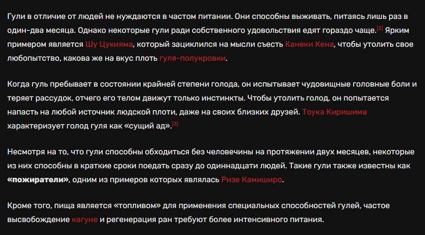 >>2406968 >Что-то я момента с яблоками не припомню. Последняя глава ж. >Но, в общем-то любой гуль может кушать яблоки. Да, их вкус для гуля омерзительный, но ведь может. Хорошо, давай переформулирую. Любой гуль, кроме Это и дочки Кена, не может переварить яблоко и получит дебафф если скушает нормальную еду. У естественных одноглазых и рецепторного отвращения нет к обычной еде.