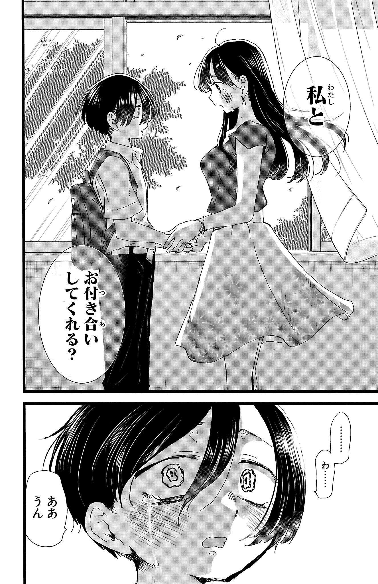 Тут мангаке, пожалуй, удалось выжать процентов 80 от того, что возможно было. Основная слабость, пожалуй, именно в персонажах - авторша видимо заранее решила сделать их максимально "обычными" и приземлёнными. Это, с одной стороны, позволило избежать совсем уж стереотипных краснь и шаблонных фраз, а с другой, сами их взаимодействия тоже достаточно обычные. Ну то есть не скажешь, что им прям очень интересно друг с другом или что их дико друг к другу влечёт, просто комфортно. Чаще всего всё ограничивается какими-то комедийными скетчами или дежурной мыслью "какая она милая" в конце главы. Но надо отдать должное, и взаимные подколы, и всякие маленькие дурацкие пристрастия, и совместные увлечения - всё это тут есть, и оно работает. Просто Рио чуть-чуть слишком невозмутимая, а Юя чуть-чуть всё ещё ояш, и их обоих не назовёшь неординарными.