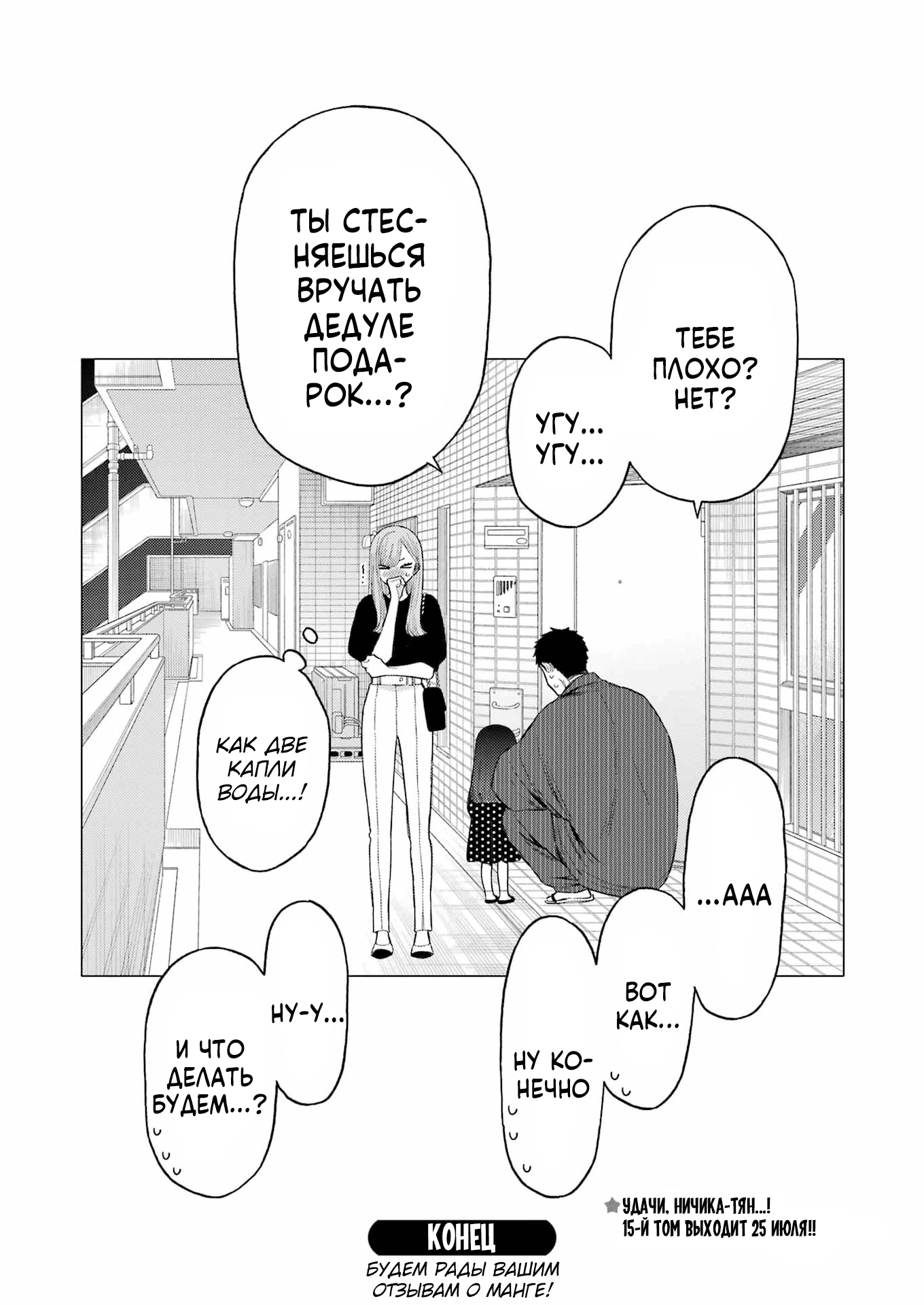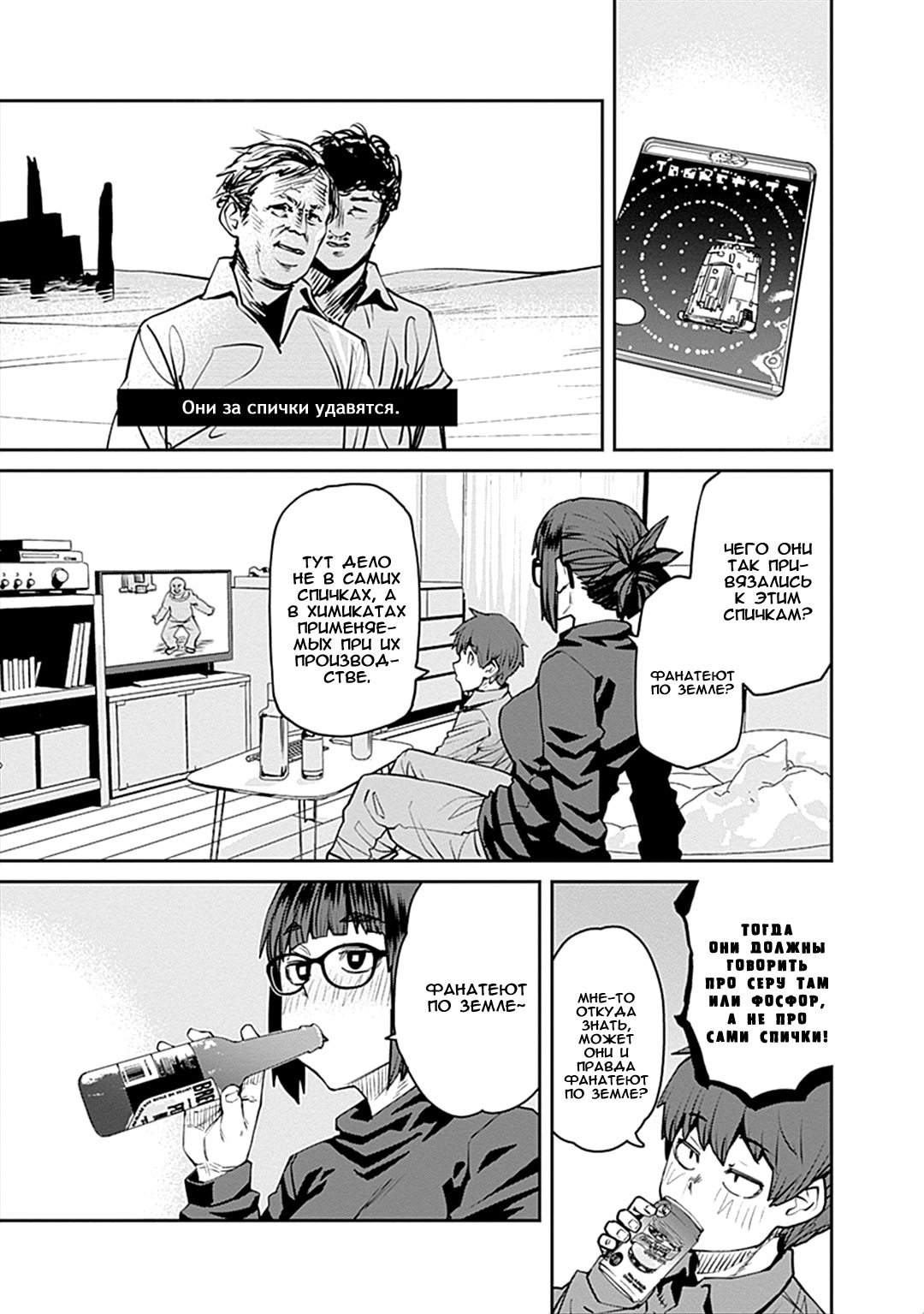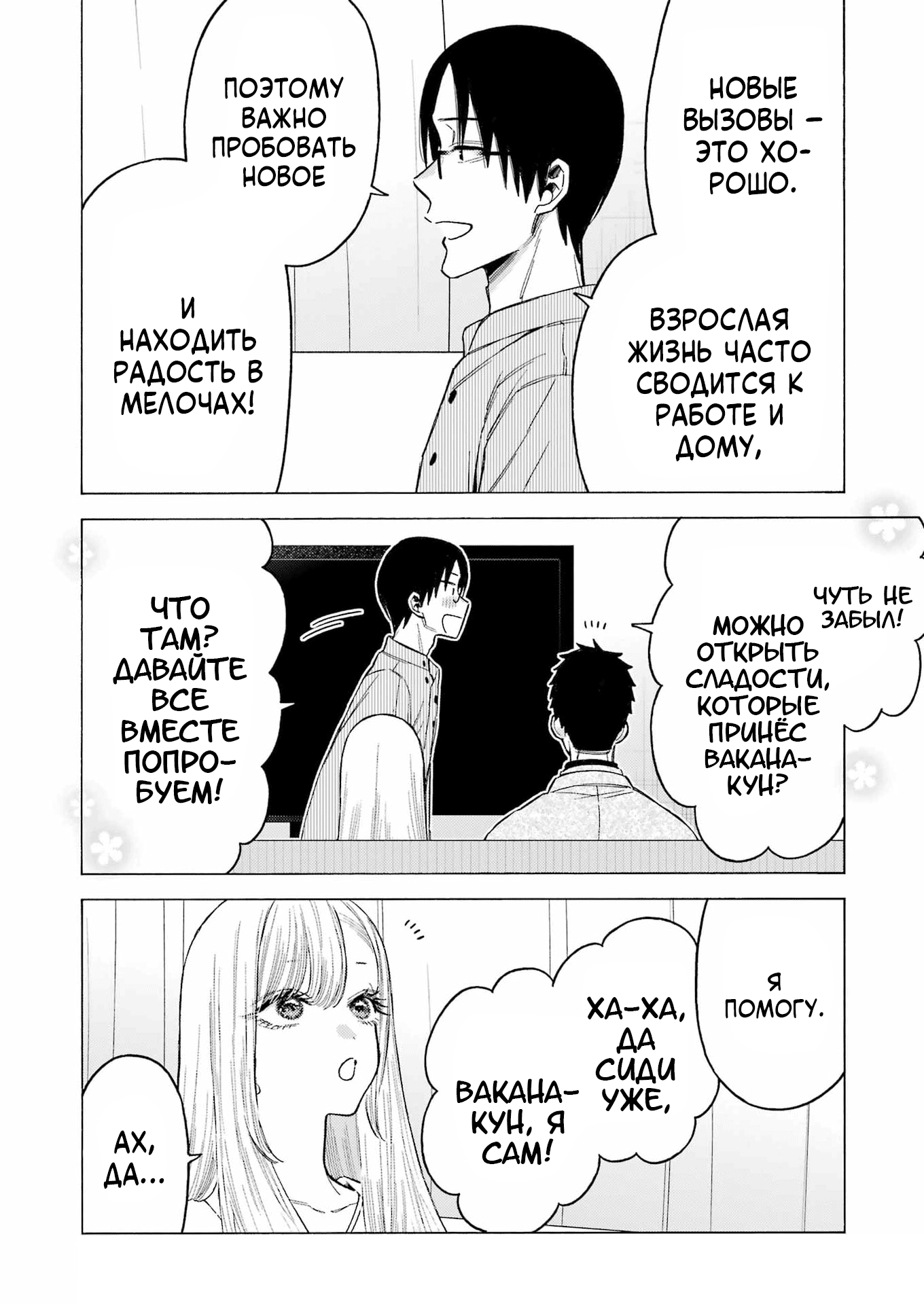 Super no Ura de Yani Suu Futari В принципе, то, что манга пытается показать или рассказать, ей удаётся неплохо. Таяма(да) довольно приятно уравновешенная, Сасаки не сильно раздражает. Милых моментов хватает, но они при этом не чересчур слащавые, хотя пожалуй иногда даже суховатые. Хотя всё это всё равно крутится вокруг одного большого недопонимания, но вот сейчас они наконец придут к взаимоосознанию, что Таяма и Ямада один и тот же человек, и дальше наверняка пойдёт шарманка вокруг их разницы в возрасте, где Сасаки будет думать, что ей нахуй не нужен такой дед, а она будет думать, что он её не воспринимает как любовный интерес.
