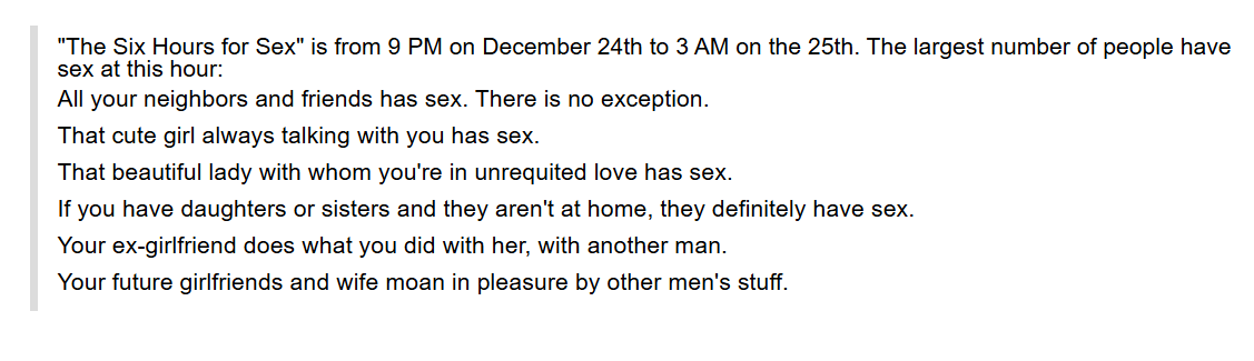 >>2431195 → >Дед замаскировался под девочку пятнадцати лет, ага и голос изменил. В том эпизоде чел был под наркотиками, так что ещё более-менее. Дальше там совсем пзида.