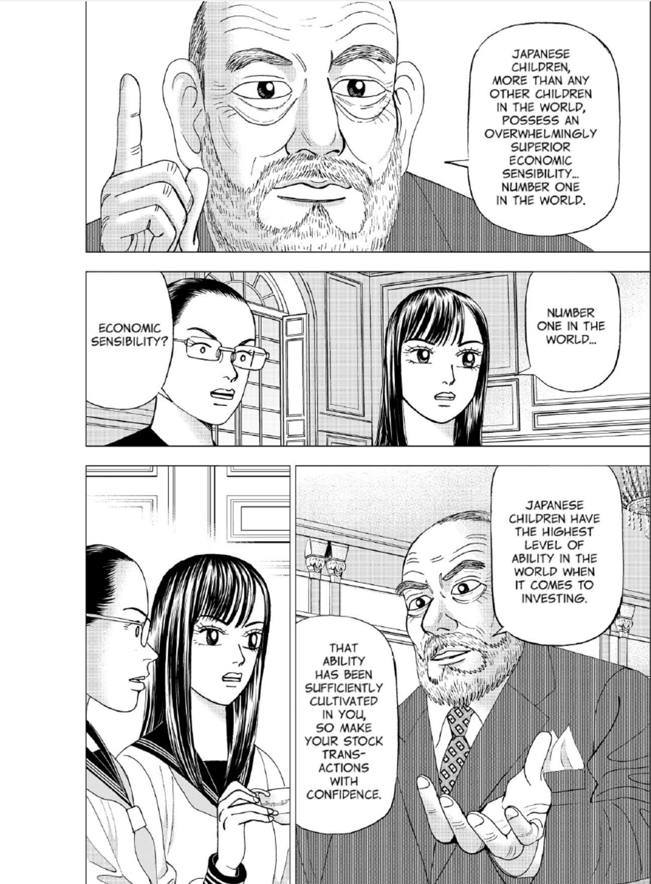По сути, сёнэн-спокон про экономику и инвестиции. Персонажи постоянно пересказывают базовые статьи из википедии. Немного японской пропаганды. 21 том! Что там столько настрочили...