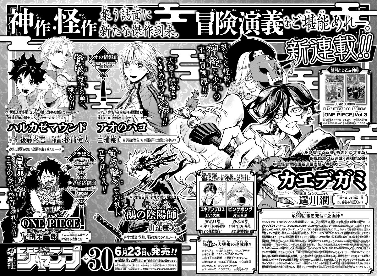 30 TOC Kaedegami (New Series/Cover/LCP/54p) by Harukawa Jun Kagura Bachi ONE PIECE Ichi the Witch NICE PRISON Harukaze Mound (CP/25p) Witch Watch SAKAMOTO DAYS Blue Box (CP) Otr of the Flame Me & Roboco Shinobigoto Exorcist no Kiyoshi-kun Nue's Exorcist (CP) Akane Banashi Himaten! Nige Jouzu no Wakagimi Enroku (Oneshot/15p) by Ichinohe Shou Kill Blue B no Seisen Embers (END)