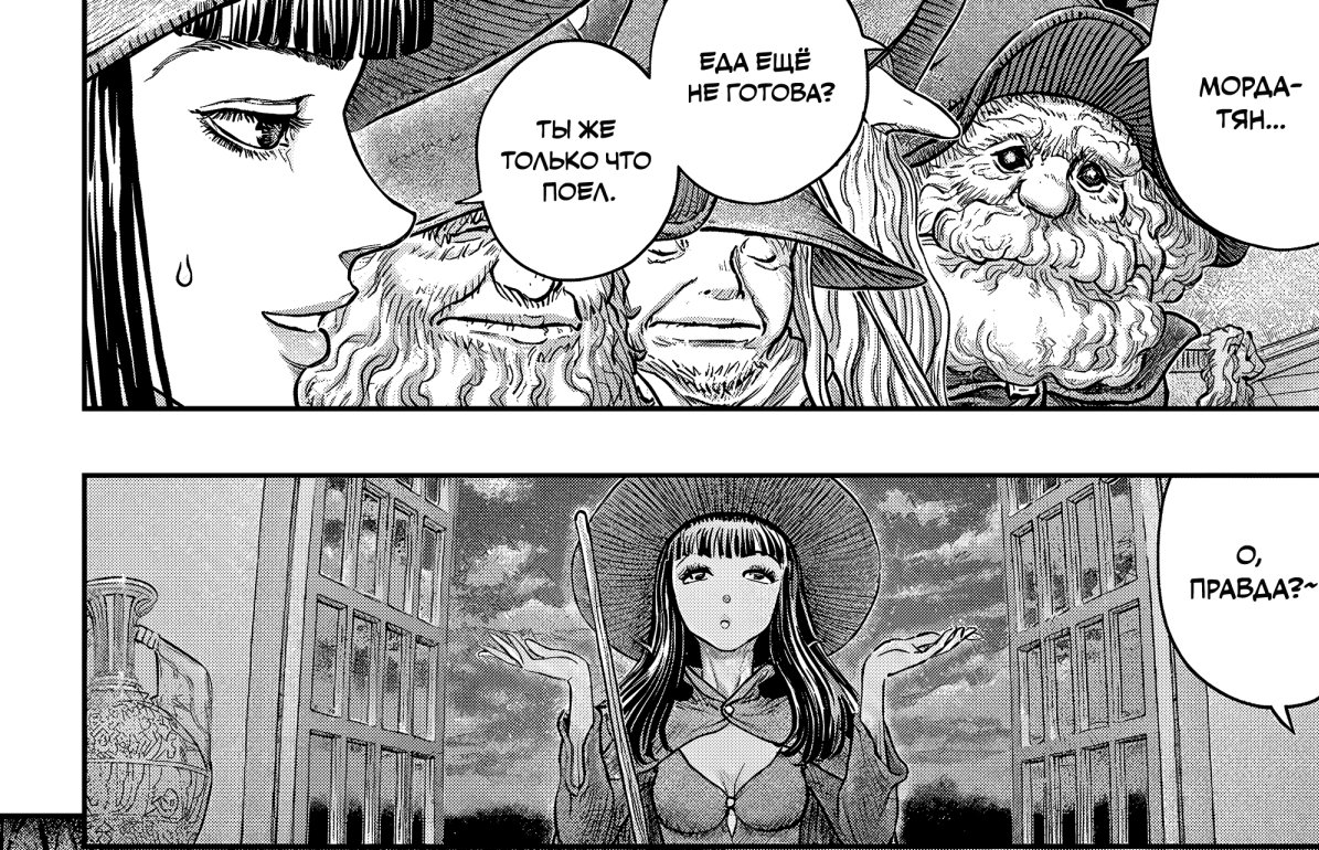 Это не все вопросы, а то что сходу в голову приходит когда пролистываю эти два тома продолжения. Я даже не касаюсь странного и неадекватного поведения персонажей, типа Пака со сложенными руками и нолем эмоций смотрящего на упавшего ебалом в пол Гатса, ньохохокающего Дайбу который несмотря на больное колено ебашит в горы, неадекватного Родерика, Исидру который хуй знает что делает и куда сбегать собирается, Морду которая напоминает Ширке (!) о том что Гатс может берсерк режим врубить, Силата который обращается к Гатсу будто знает его, постоянные вскипания Гатса которые тут же игнорятся и ведут ни к чему и прочие многочисленные странности и мелочи.
