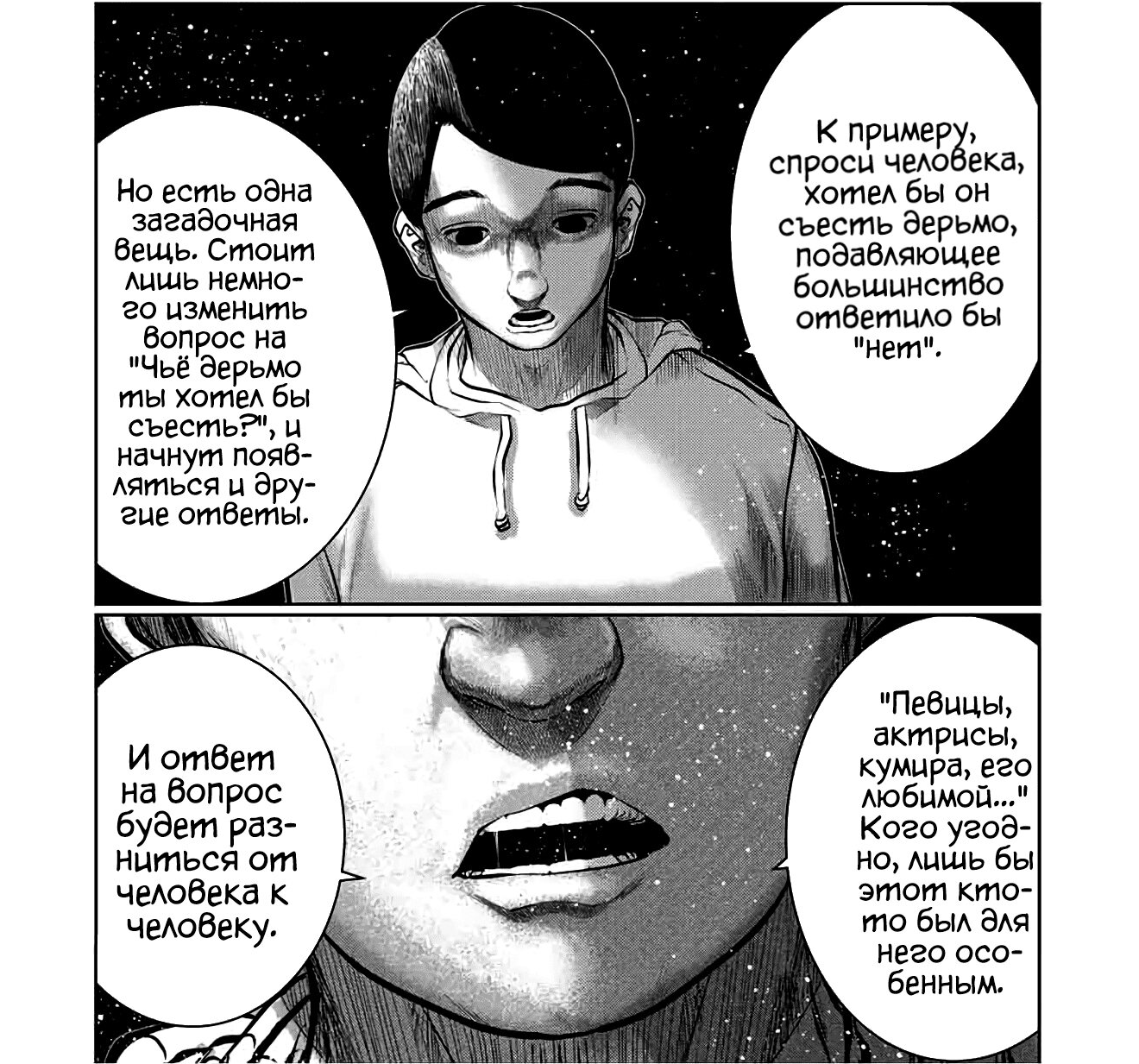 >>2445159 А мне все норм, пока не вспоминаю, насколько всё это инфантильная штука. Я недостаточно хорошо знаю языки, поэтому мне проще мангу на русском, и, когда там встречаются грамматические ошибки или криво составленные фразы, мой мозг автоматически воспринимая, исправляет их, но если начинаю об этом задумываться, то становится стремно — ведь аудитория и переводчики этой манги подростки, для которых подобные косяки простительны и допустимы, а я лишь залетный скуф, который читает предназначенные для них вещи и ругается при этом, что "сюжет хуйня и сделали хуево, и комментируют дебилы".
