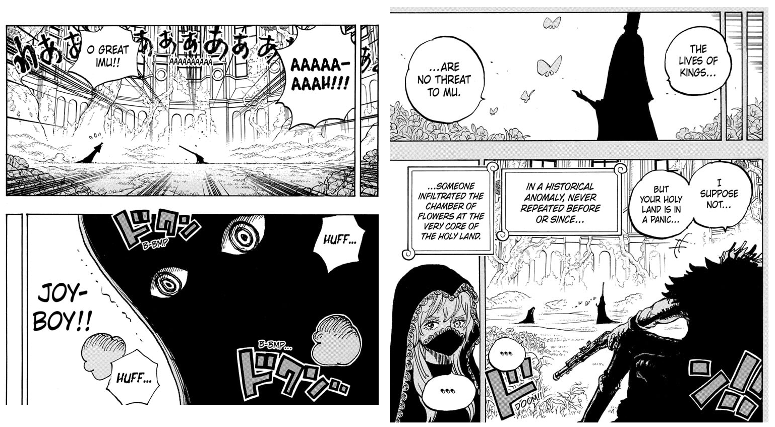 Жутко интересно почему Шебек не смог убить Иму, при том что это первый и последний раз когда кто-то пробрался в Цветочную Комнату. У него еще идея появилась как одолеть Иму, для этого нужно что-то, поэтому пригрозил возвращением. Откуда он вообще узнал об Иму и где тот находится? Как он туда добрался? У него фрукт телепортации? Столько вопросов...