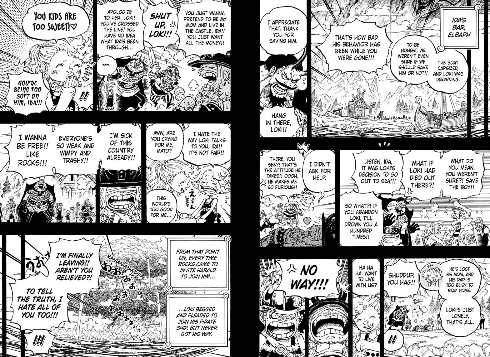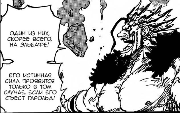 Именно Гарольд, а не просто гигант. Значит это не может быть фрукт Санхуан Вульфа, он то обычный гигант, что увеличивается с фрукта до колоссальных размеров. Примерно в 8 раз, если его изначальный рост 22 метра. Если бы его съел древний гигант, как Гарольд и Локи 67 метров, то фрукт увеличил бы их до 536 метров. Слышал размер кулака Луффи из конца Вано рассчитали, как 1000 метровый. Не может же быть мечта Рокса буквально уничтожение Мариджоа с помощью больших кулаков. Авось там мифический зоан Одина идеальным носителем которого может являться действующий правитель Эльбафа. Так же и с Никой для которого скорее всего тоже нужен подходящий пользователь, а не рандомный обрыган, которому пробуждения не видать, ведь нужно уметь смеяться и использовать воображение для смешных атак. Гарольда как раз могли убить потому что тот не имеет желания поедать такой фрукт и использовать "по назначению" согласно плану Рокса (или его последователя 14 лет назад), а вот Локи больше проявляется желание к сражению. Ему скормить и захотели.