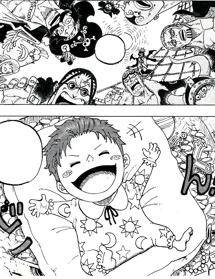 Ну что по спойлерам никакой новой инфы, Роджер бахнулся с Гарпом, Рокс собрал команду и планирует посетить Эльбаф где хранится легендарный фрукт. Всего легендарных фрукта 2, они нужны для победы над Мариджоа.