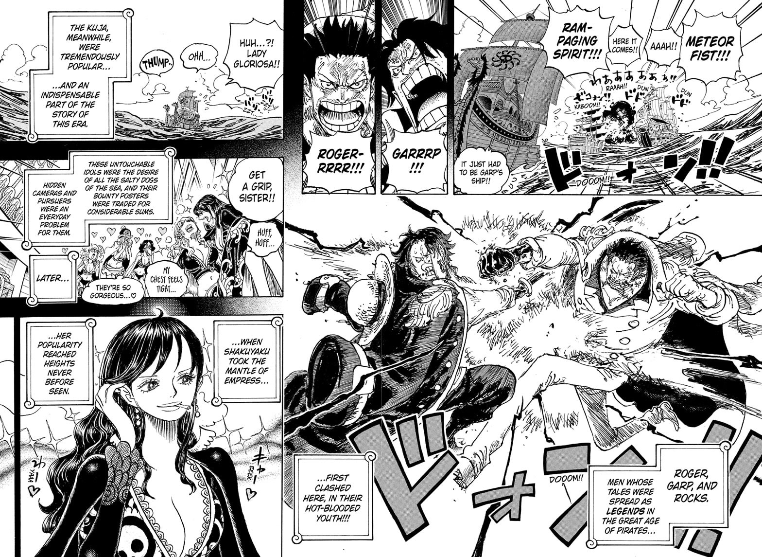 В штабе Морского дозора Гарп попросил Конга разрешить великанам вступить в ряды морпехов, так как им нужна сила великанов. Но Конг сказал, что не может этого сделать, так как это что-то, что может разрешить только Мировое Правительство. Они также говорят о Роксах.