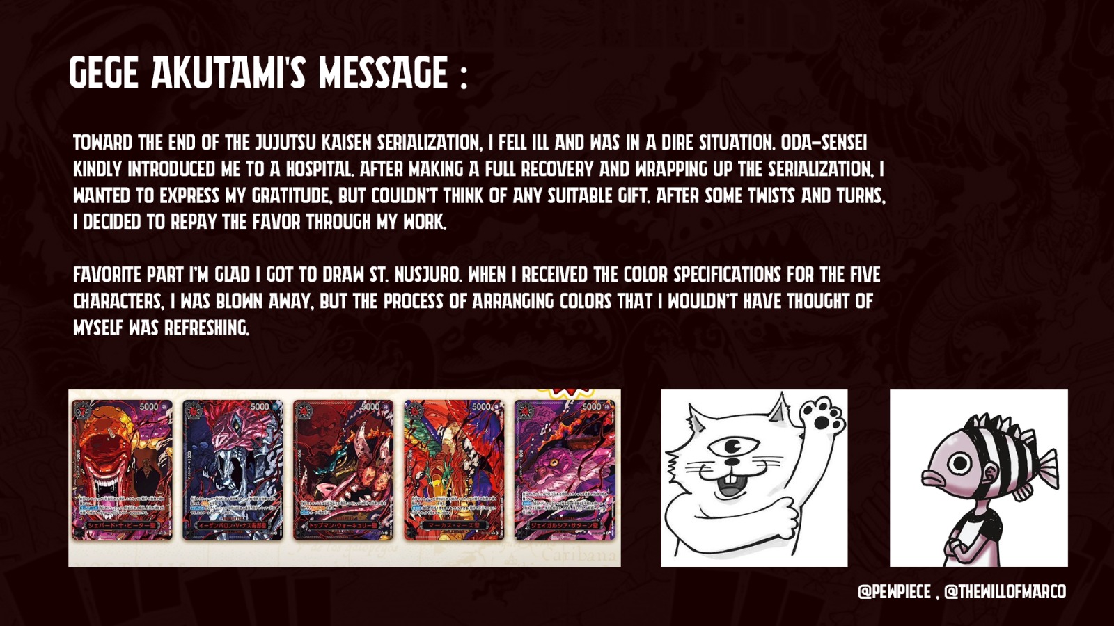 Редакторы и ассистенты вообще хрен знает чем занимаются, предположу только что Ода тупо держит у себя на работе друганов приятелей, чтобы ему скучно не было, потому что журнал ОБЯЗЫВАЕТ редакторов держать в штате но Оде заебало что ему указывают и перечат, набрал лояльных. Изредка какой-нибудь фон отрисуют и на этом всё. По сути настоящая должность называется - подсосыч Оды.