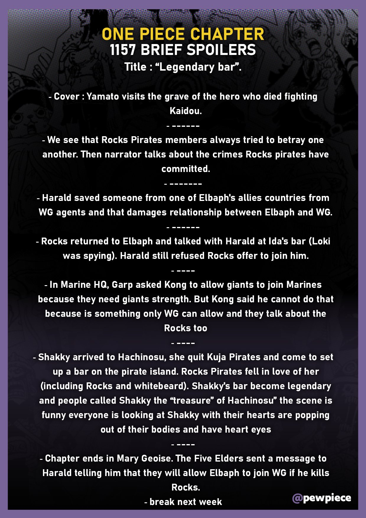 >>2444040 ONE PIECE ГЛАВА 1157 – КРАТКИЕ СПОЙЛЕРЫ Название: «Легендарный бар»