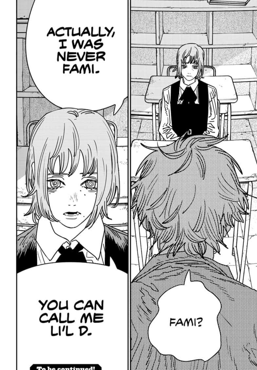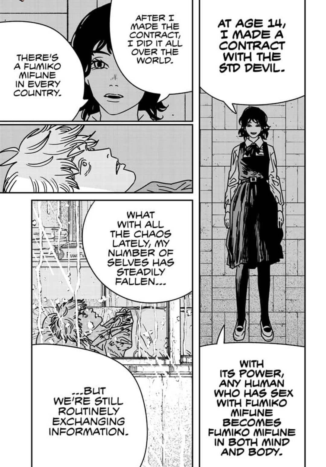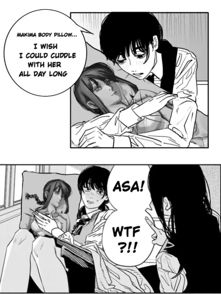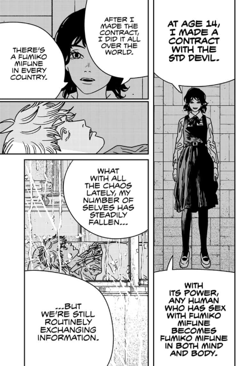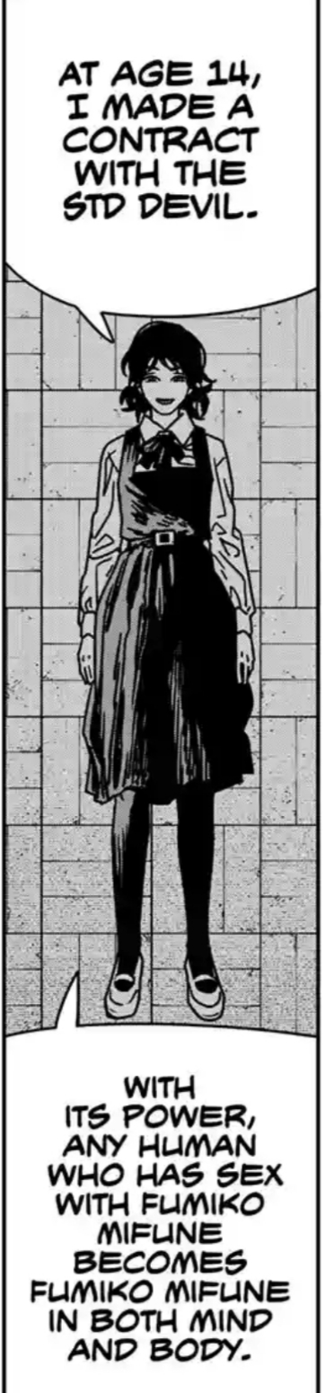 Стоп, то есть Йошида и Фумико знали, что Фами это мама Смерть? Ещë в какой-то главе Фумико проговорилась Денджи, что слежка за ним велась даже в толчке, а он от этого бахнул, ибо дрочит там У них типа есть какой-то девил способный находиться внутри физических объектов/давать маскировку?
