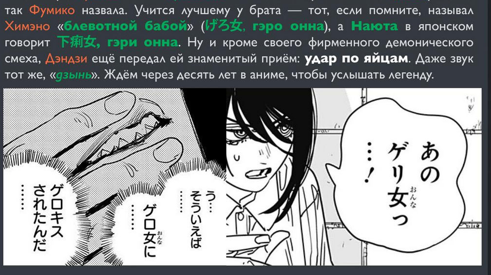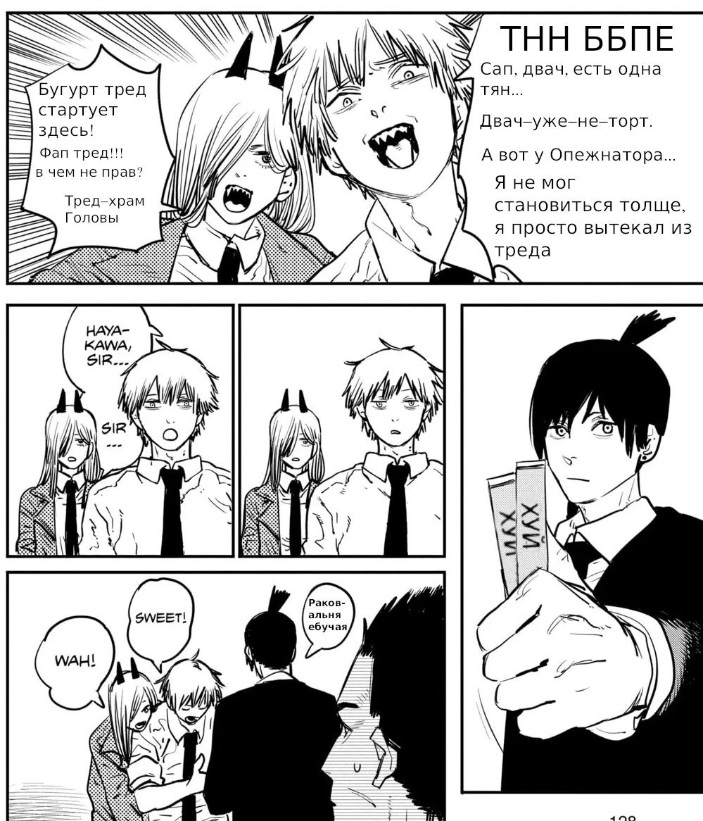 Как же у всякого соевого говнеца горит с последних глав, прям бальзам на душу. Желаю фудзимото продолжать в том же духе, пусть ошмётки жоп этих трясущихся ебланов по всей солнечной системе разлетятся.