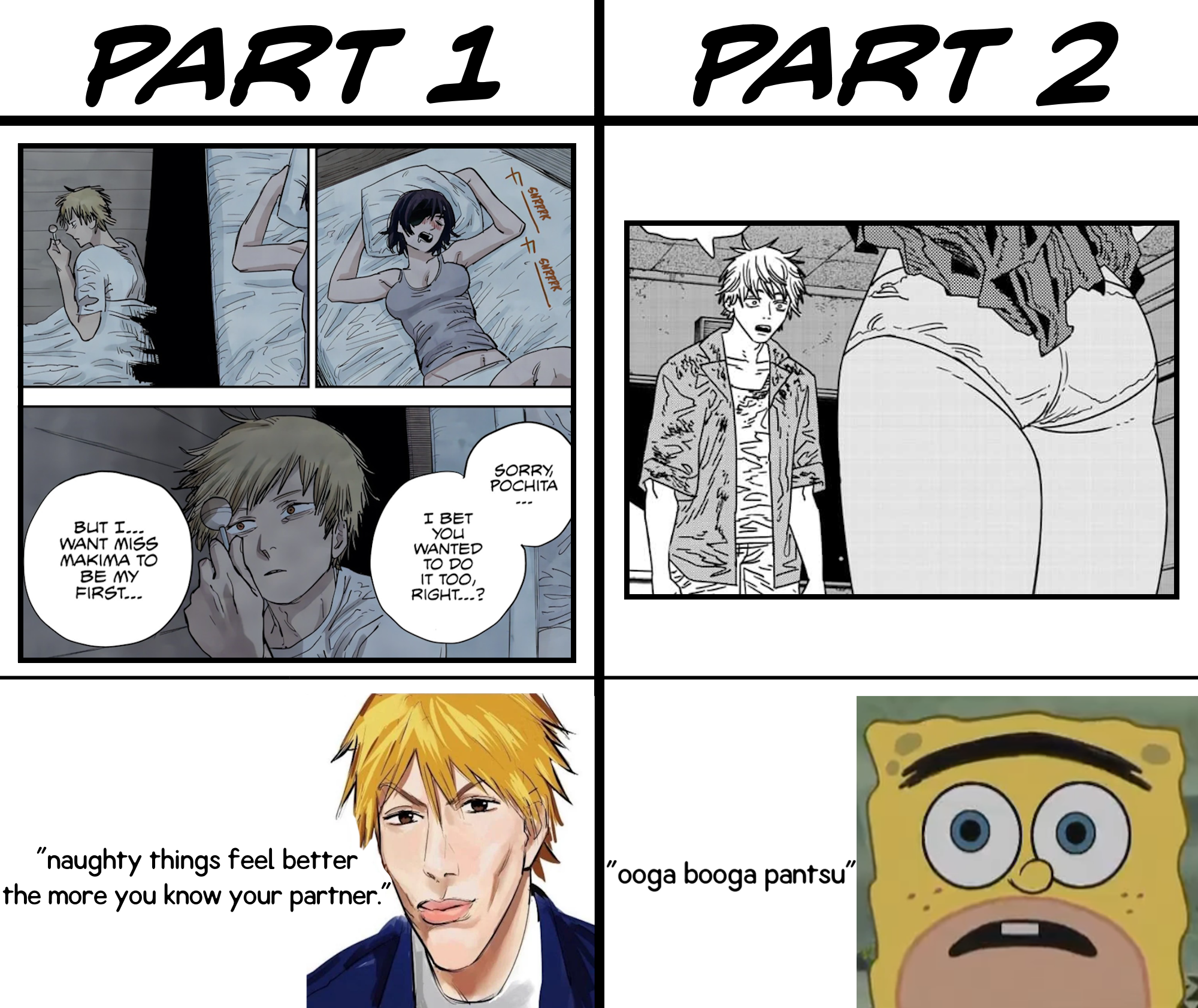 Слушайте, а что такого было в БАХ по паве от макимы если пава это ебаный демон и от баха по оболочке ей было ни холодно ни жарко и она спокойно спустя главу уже бегала голая с Деном на плече? Понятно что предательство макимы внезапное и все такое, но.. разве не дохуя драмы?
