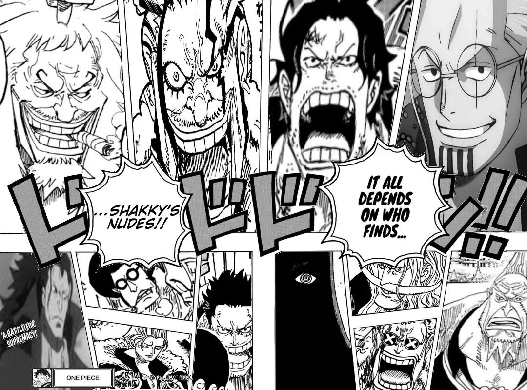 Вы посмотрите как этот специалист в команде по открыванию баклах, подорвался помогать. Это его сокровища всё ищет Баги? Судя по всему эти сокровища окажутся - панцу Шаки. Помните ещё Брук спрашивал про панцу Шаки и она почти ответила. Он сам того не зная был близок к разгадке того, что такое Ван Пис.