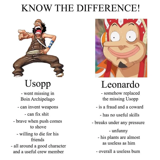 >>2446427 >Перед Скайпией Луффи и Зоро сказали не он, а они. Пруф? >Разное количество зубов на разных сканах Свастика на спине Эйса. Шапка Кумы. Ноги нами. Чоппер. Давай без этого, ок? А то получится, что там одни клоны.
