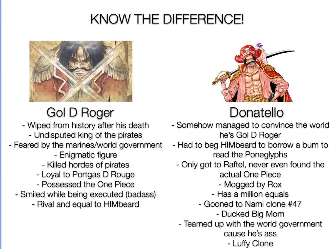 Нахуя Ода обсирает собственных персонажей? У него был брутальный Роджер, ну так пусть остается бруталом, нет, надо его сделать клоуном , а потом и вовсе собачкой очередного нами клона. Был гарный Белоус, ну так пусть остается главным гаром Ван Писа, нет, пусть пускает слюни на нами клона. Сейчас он ввел охуенного Рокса, который хайпил 200 глав, и сразу же сделал его инцелом. Какого хуя ебаные пираты куджа вообще всунулись во флэшбэк Локи? Ладно Рокс, его надо как-то раскрывать, но эти нахуя нужны? Тьфу блять, заебало. Я уже не ебу за что можно любить эту мангу. Бои? Все уже давно тупо кулаками и мечами пиздятся. Персы? Одни фрики и ебланы. Сюжет? Плетется со скорость полудохлой улитки. Рисовка? Ничего особенного. Хуй знает. Хули Ода хуйней страдает? Я так скоро в хунтерафага превращусь.