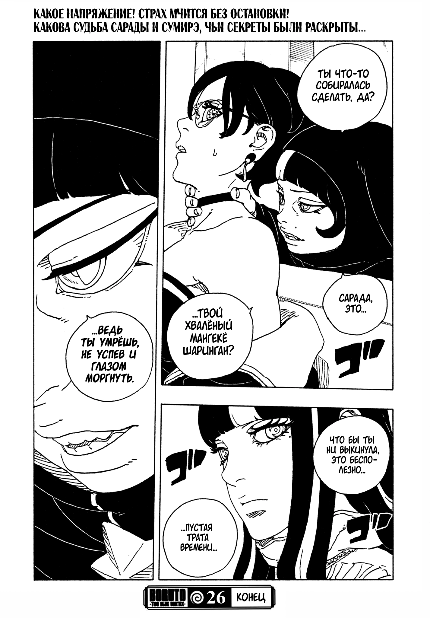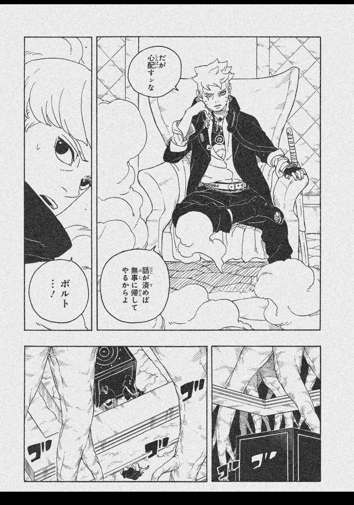 норм глава, разговорная. старики снова хуйней страдают и пытаются пидорнуть хокаге, боруто и дед спорят о жертвах и боруто уже поухй что будет даже себя на конь поставил лишь бы родные выжили, эйда видимо с первого разговора про чмобовь просто проверяла девок на лояльность, сарад успела среагировать глазами на гоблина мелкого но ее тело не успевает за глазами. ниче сусаноо не за горами
