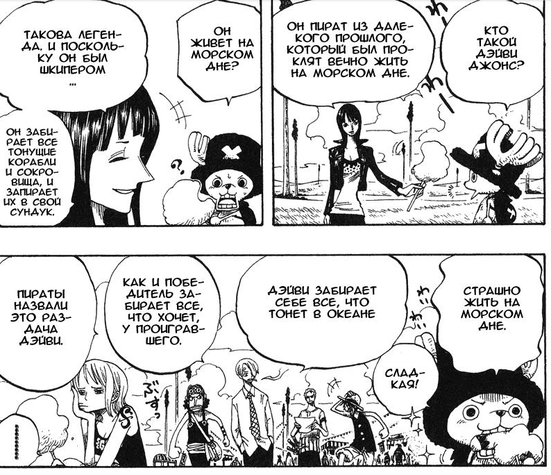 При этом никто никогда не заикался о том чтобы Робин, ну так, на всякий случай, научила своих накама этому языку. То что хотя бы Нами не проявила интереса, это конечно странно. Причём можно же ещё проще - РОБИН, СОСТАВЬ БЛЯТЬ СЛОВАРЬ. По словарю бы читали.