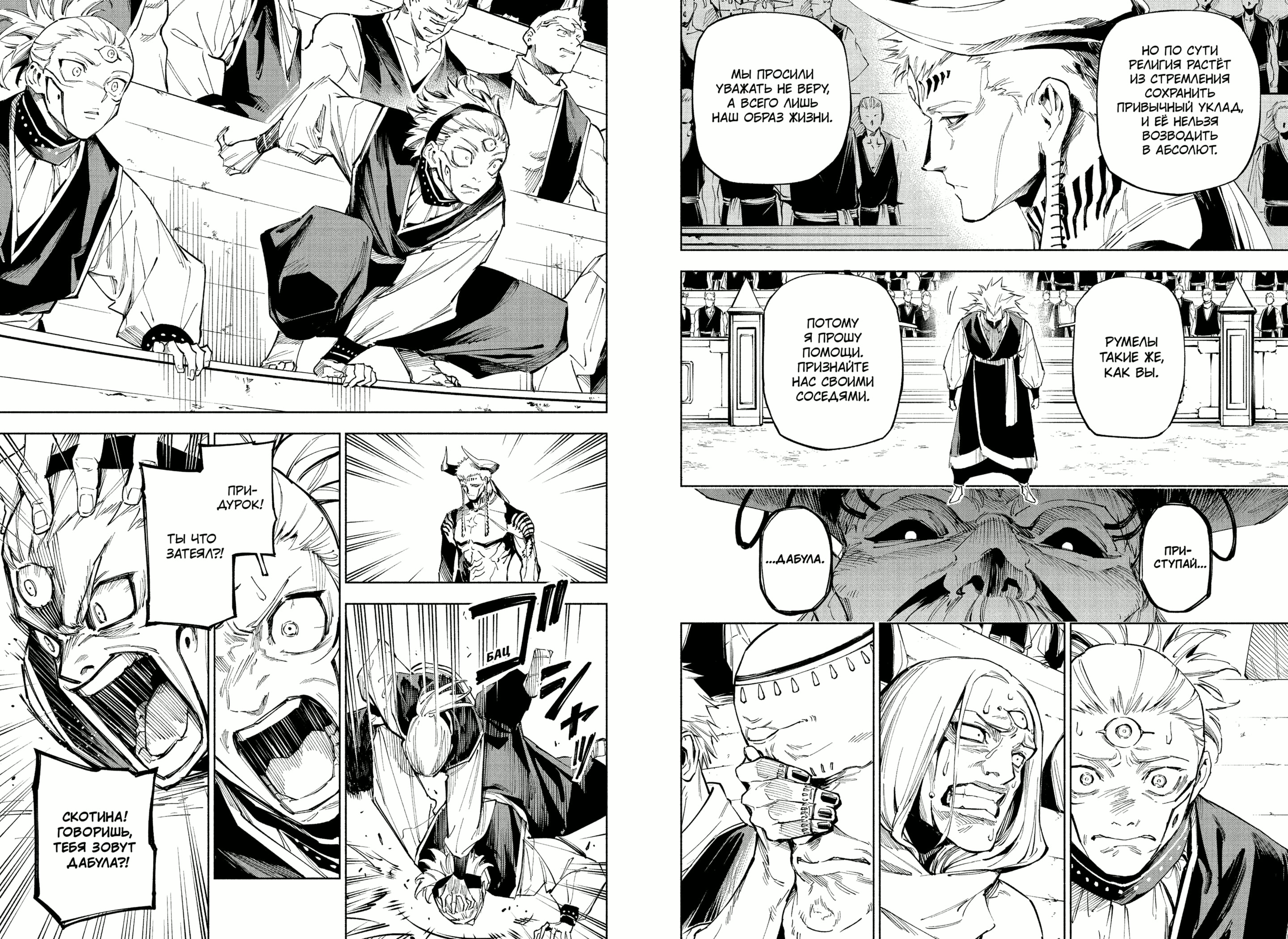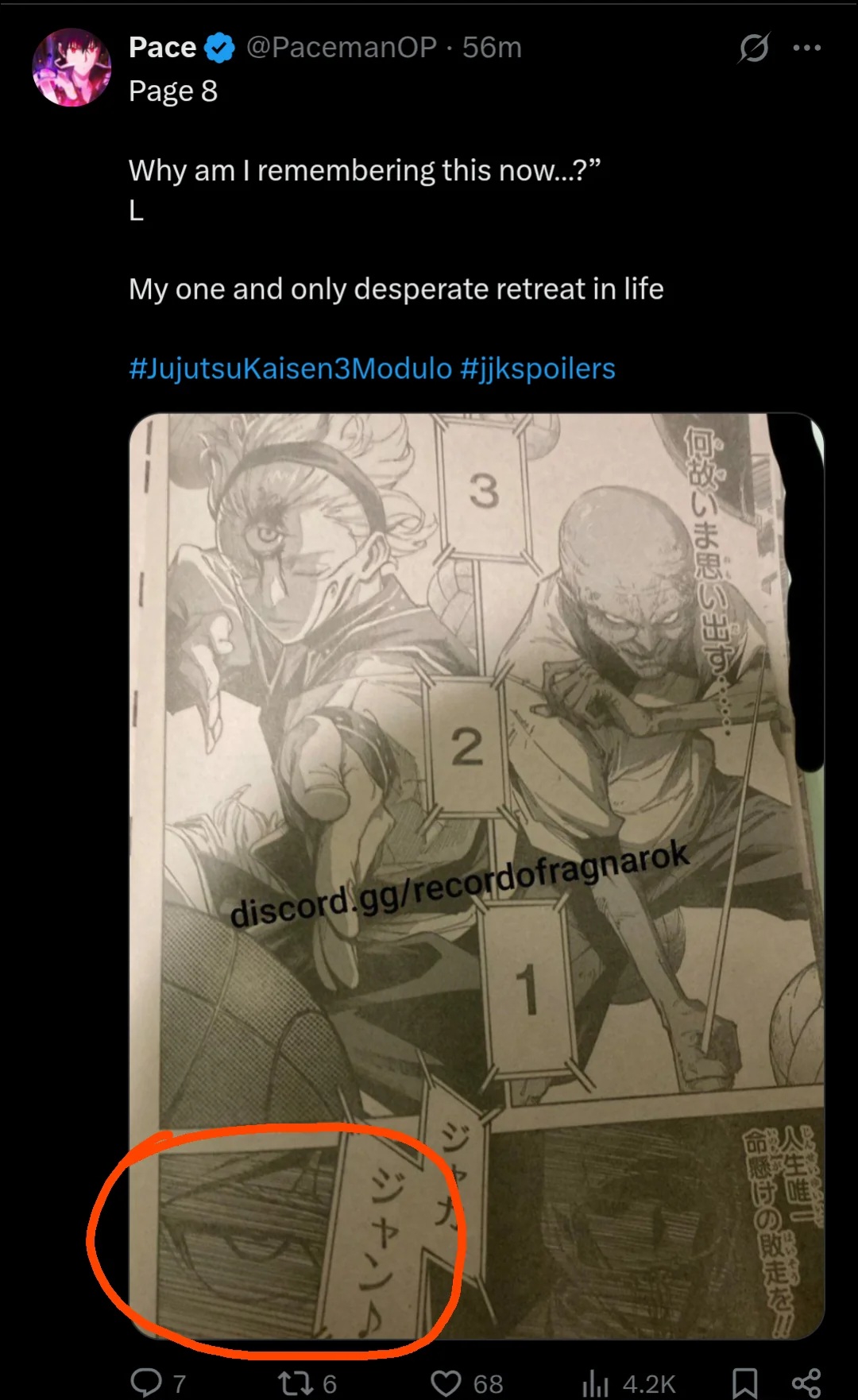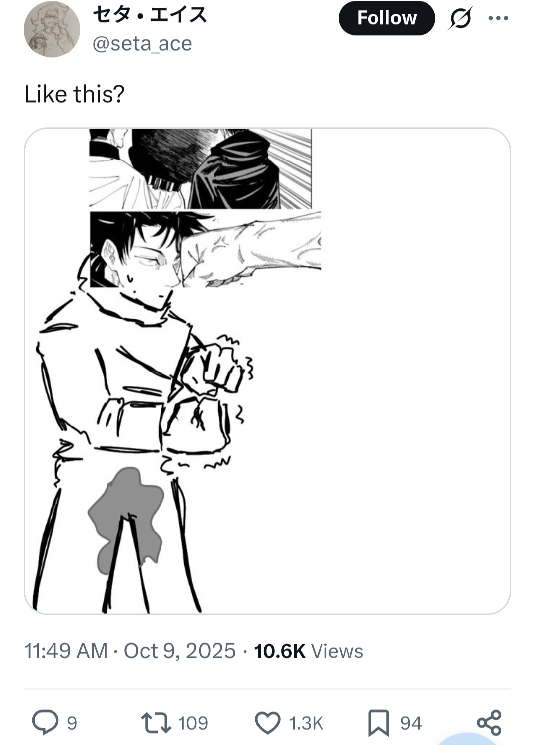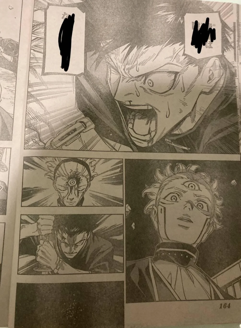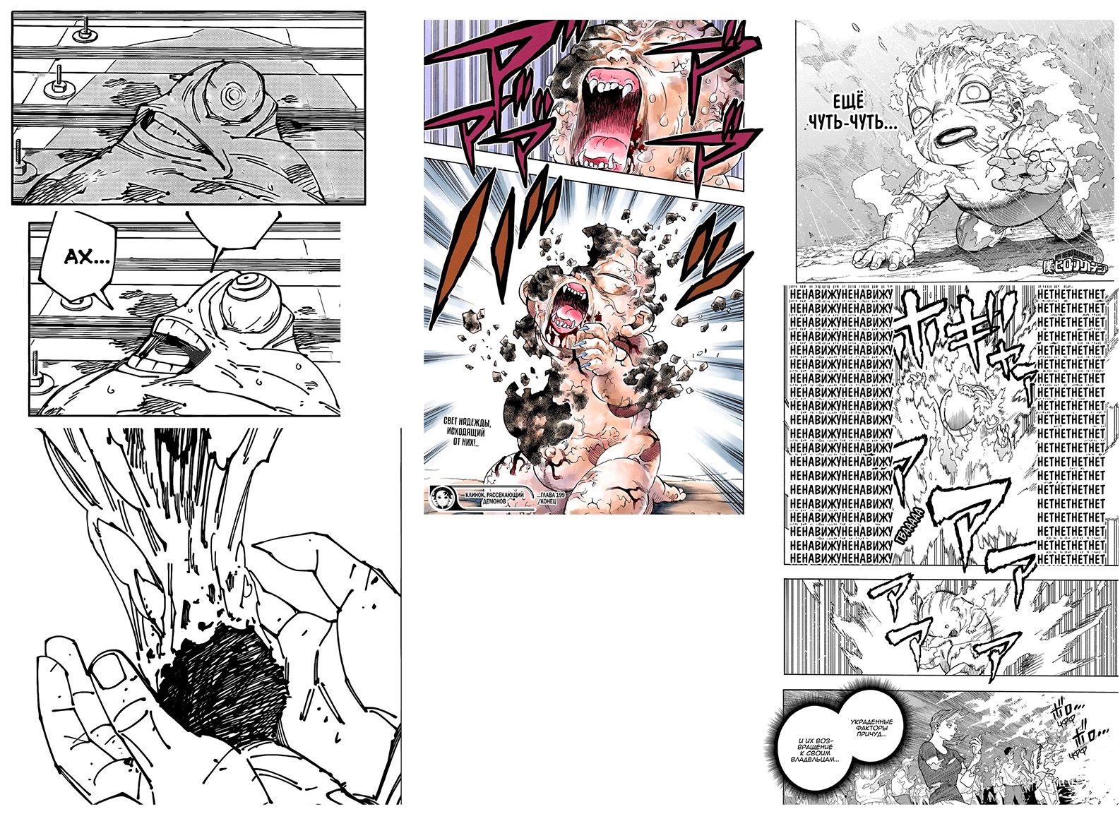 Кстати да. Вчера увидел, не вспомнил момент из манги. Бонес вдохновились Гегой и спиздили сцену в геройку напоследок. Двойная синема. Не нравится этот разворот из за уродливого нарисованного Махито. Маппа должны были не просто покрасить страницу, а анимировать ее в стиле аниме блять.