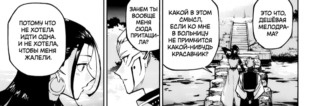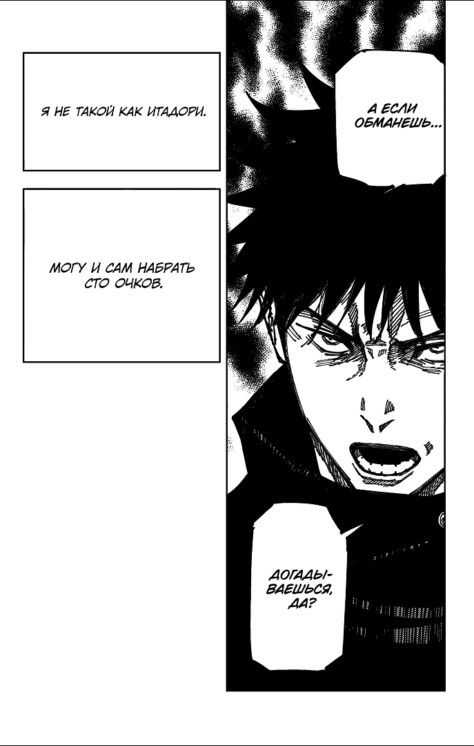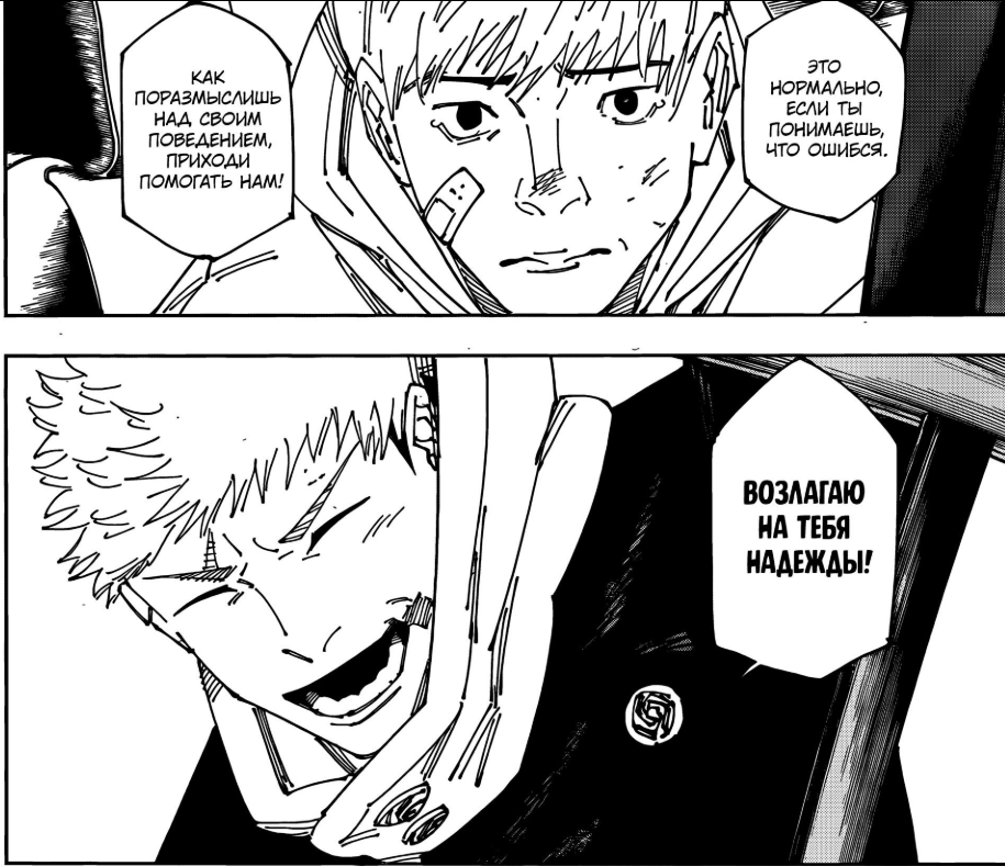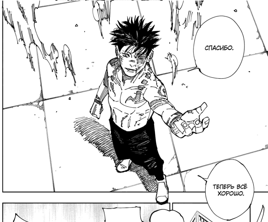 В следующей главе возвращение Инцела. Он как вы заметили стал теперь взрослым мужиком. И он единственный кто может своей силой вылечить раковую опухоль в мозгу Юки. Вообразили уровень моралфажества и соплей в следующих главах, которые должны заставить Махито её вылечить? Драться они с ним разумеется не будут. Они даже с дедом не могут справиться, куда им с таким читером махаться.