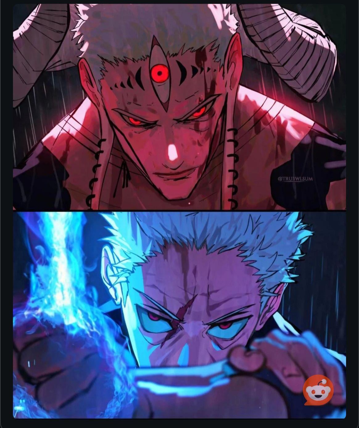 И если вам в предыдущей главе казалось, что Геге байтит НасрутоБоруто кальчик, своими подозрительными срёмарианами, очень напоминающими Ооцуки. То вам не показалось. В новой главе Геге буквально ворует лор Учих и механику Шарингана, адаптируя его под своё сатиристичное произведение.