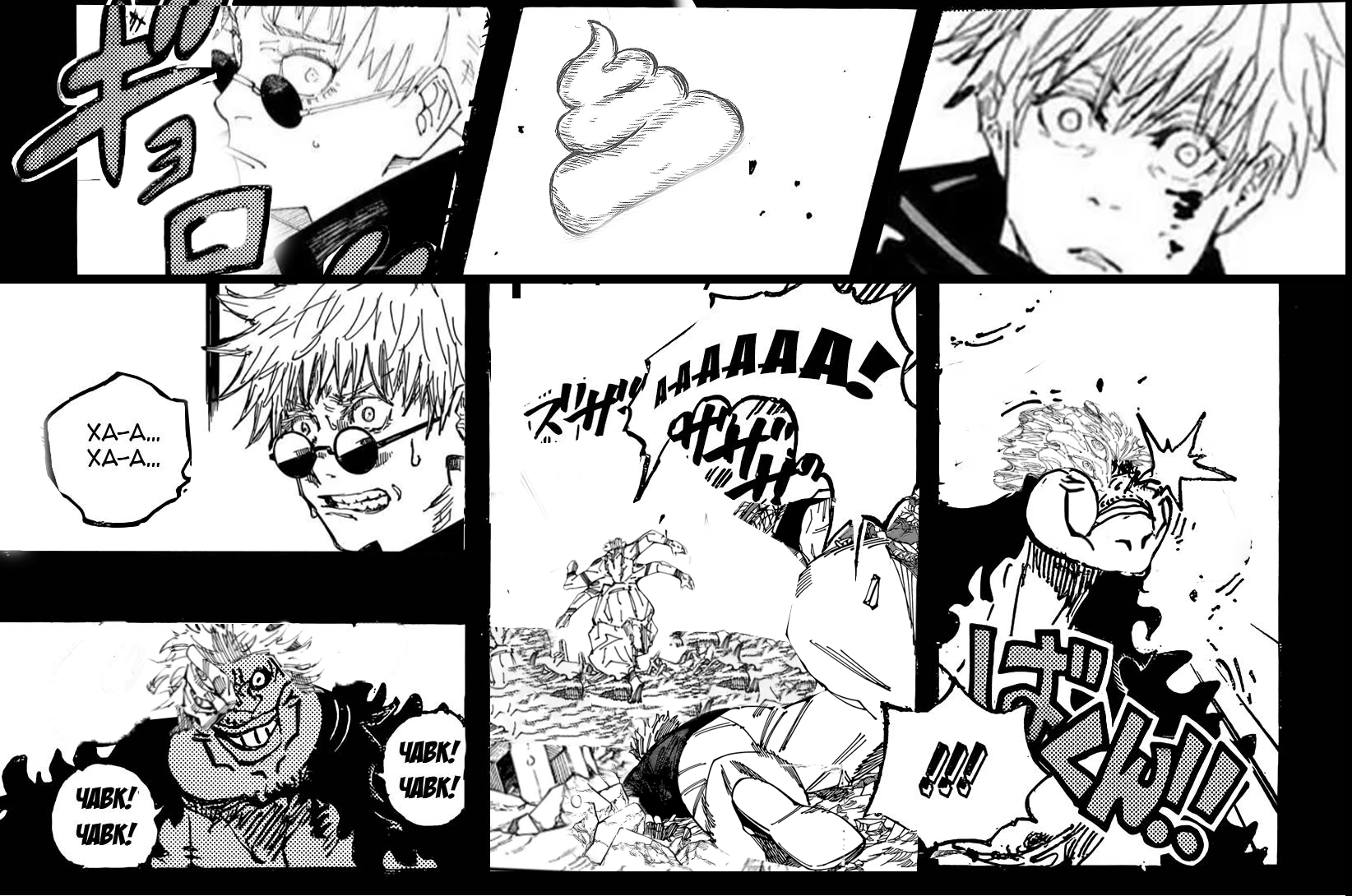 Гега хотел сделать крутой момент типа Итадори настолько пиздат что до усрачки запугал врага который спустя 60 все еще ссытся НО блять это не работает когда ссущий враг это БОМЖ ПЕРВОГО РАНГА. Это только позорит Итадори раз он кошмарит только слабаков