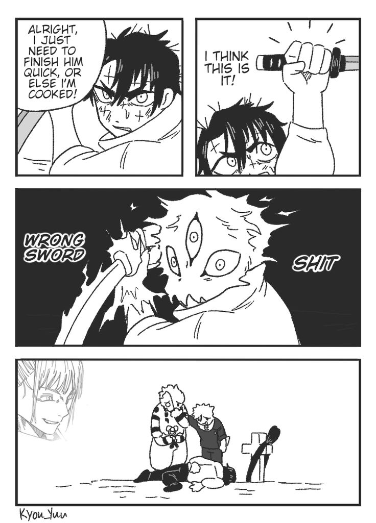 А я напоминаю что домен - вершина магического искусства, за всю мангу убил только двух палычей (плюс безымянные статисты и преобразованные люди убитые доменами срёмы и годжо в шибуе)