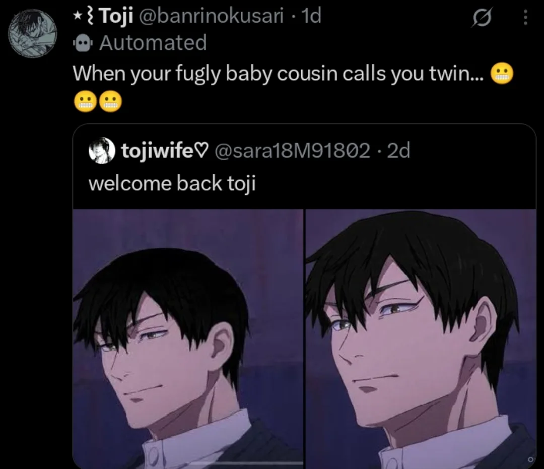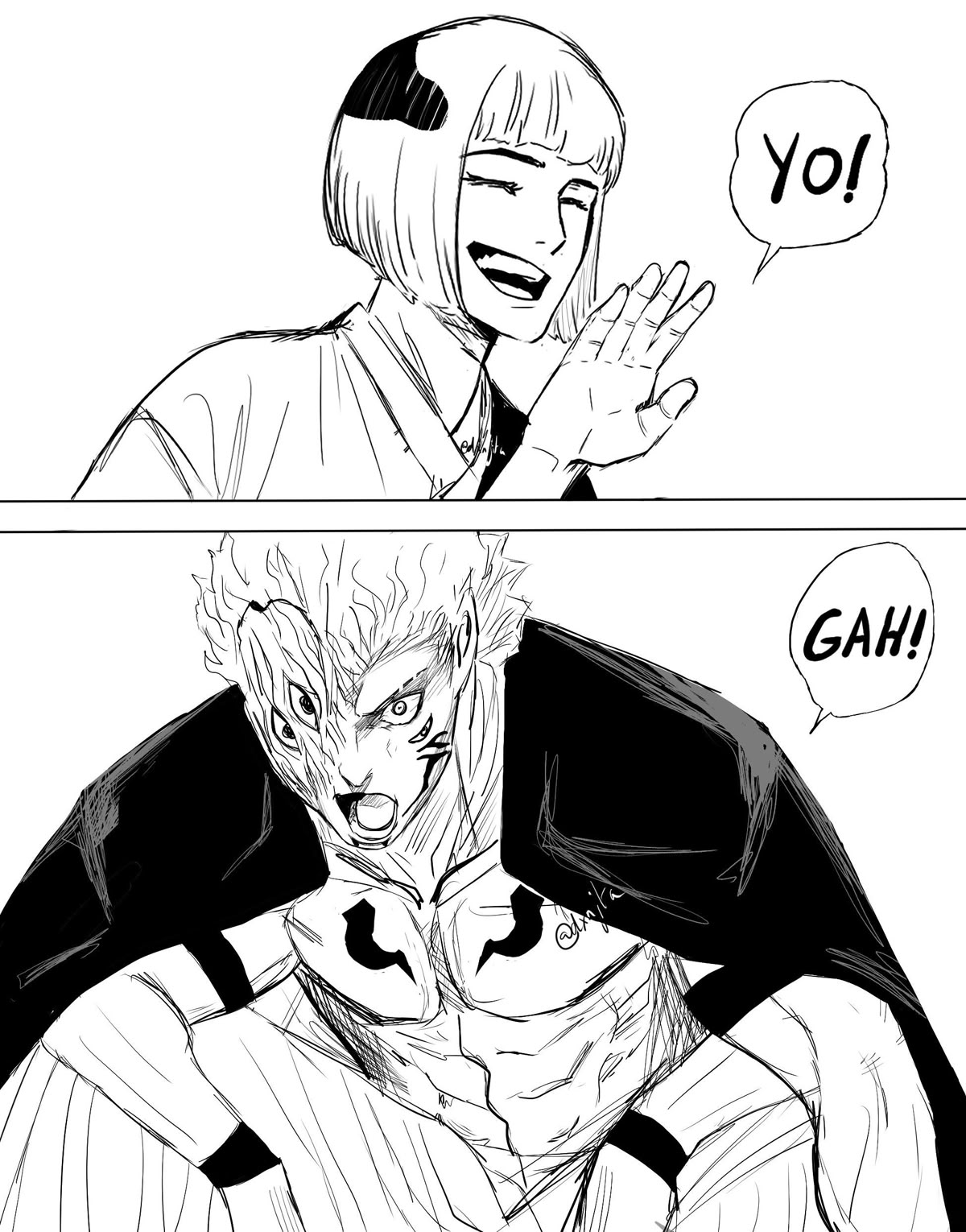 >Инумаки Тоге член клана Инумаки, который верхушка в свое время заставила вымирать из за опасности их техники проклятой речи заклеймив преступниками >Единственный показанный член клана преступников магического мира поступил в магический техникум только из за того, что Годжо поддерживает молодняк, поэтому весь класс 2017 года состоял из аутсайдеров, которых не приняли бы в нормальных условиях Спустя 65 лет >Усами пользователь проклятой речи Геге хочет сказать эти двое размножились?