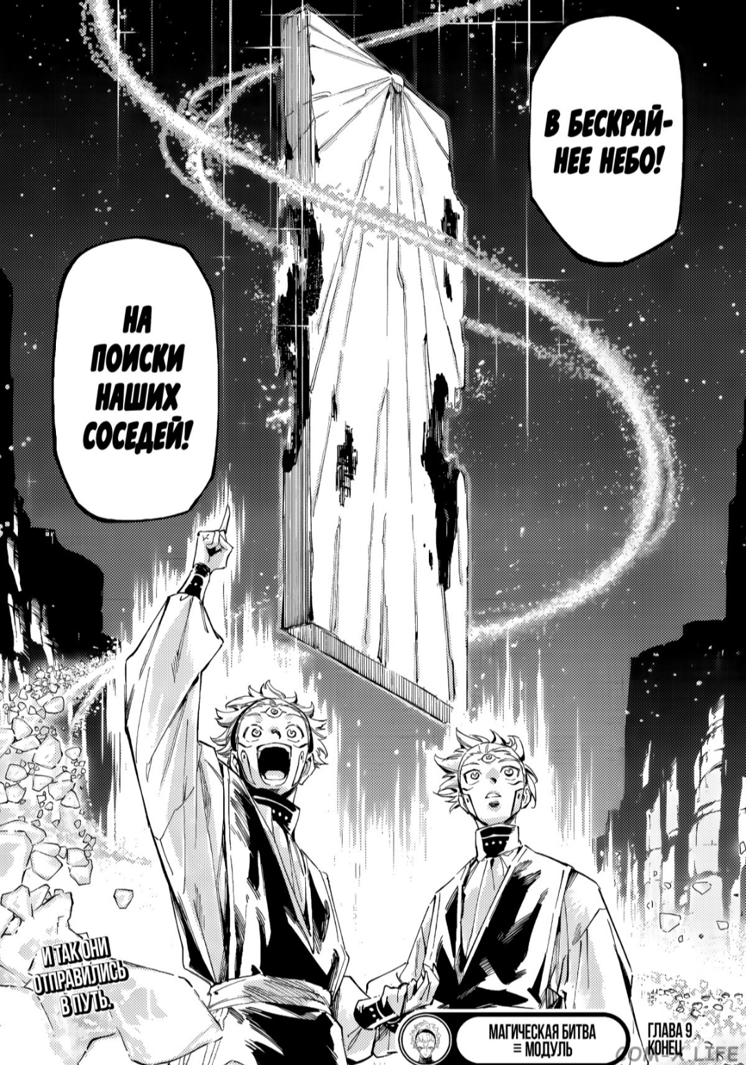 Modulo/Mojuro/Модуло/Модуль. Боруто от мира JJK. Сюжет разворачивается спустя 60 лет после событий основной манги. В главных ролях внуки Юты и Маки. Есть пришельцы. Знакомых героев пока нет. Геге Акутами в роли сценариста, рисовка от Юджи Ивасаки.