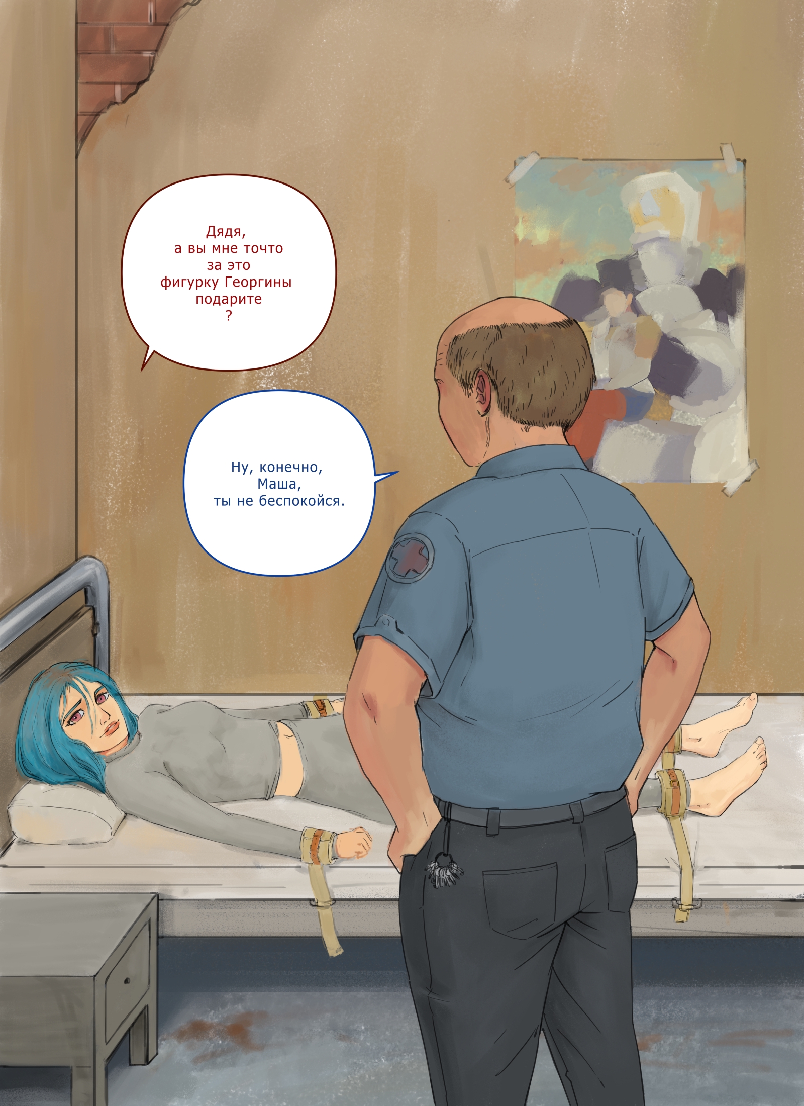 Следующие страницы будут технически сложными, так, что не знаю когда допилю. Думаю ещё рисовку немного поменят, что бы мог быстрее рисовать. >>2456581 >где две няшные медсестры останавливают кровотечение Не буду спойлерить, но может нечто подобное скоро будет. >>2456591 >как будто автор забыл нарисовать страницу Нет не забыл, в будущем этот инцидент будет ещё немного развёрнут. >>2456596 >Однако врач Это охранник, а не врач.