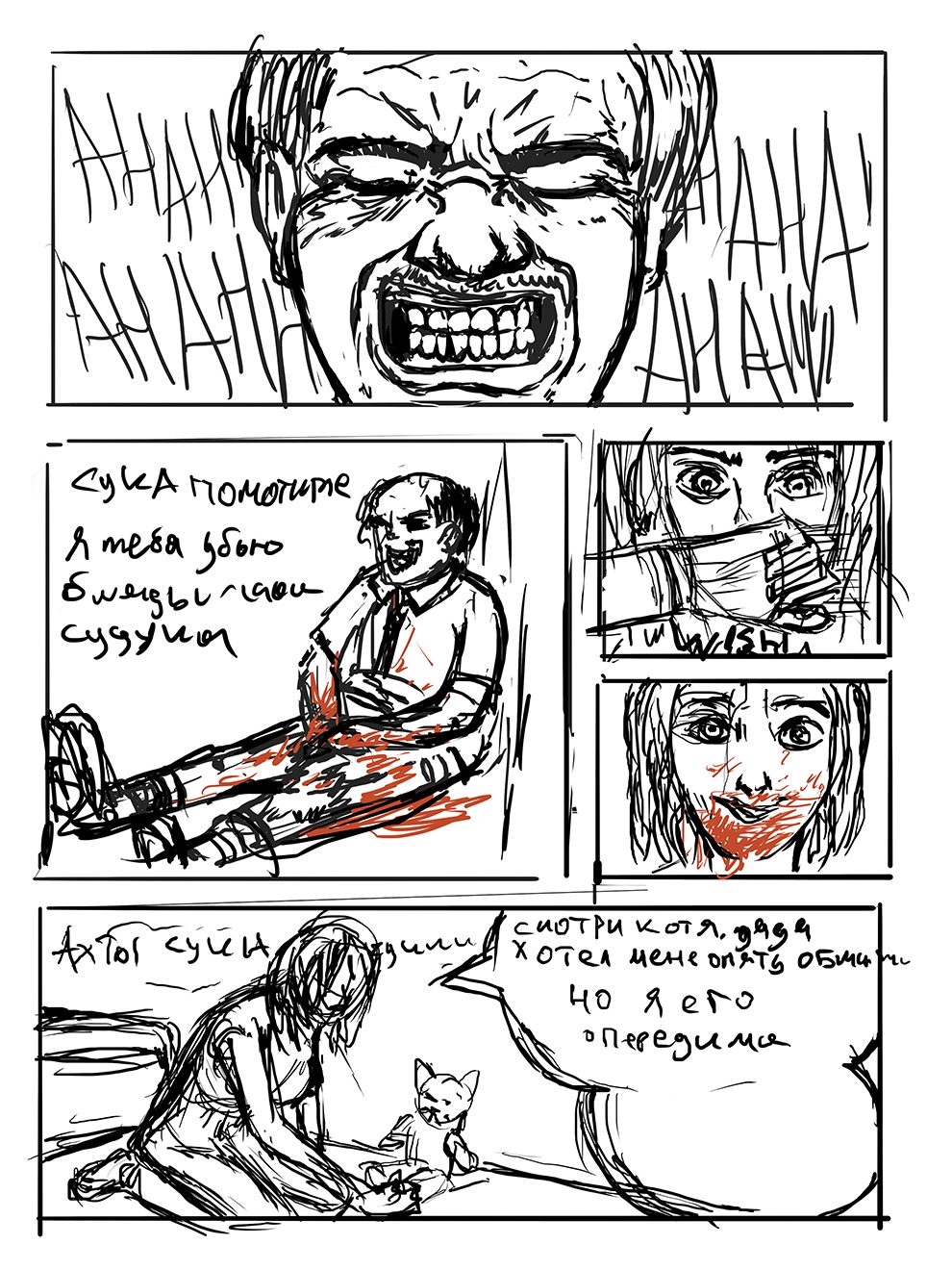 О себе же скажу вот что: у меня просто ужасная концентрация, поэтому я кидаюсь от одного наброска к другому, так и не заканчивая многие из них. Сейчас я сильно жалею, что в начале своего пути так и не научился делать нормальные скетчи. Не меньше жалею и о том, что я складировал раскадровки, хотя в моих силах было доводить их до полноценных рукописей...