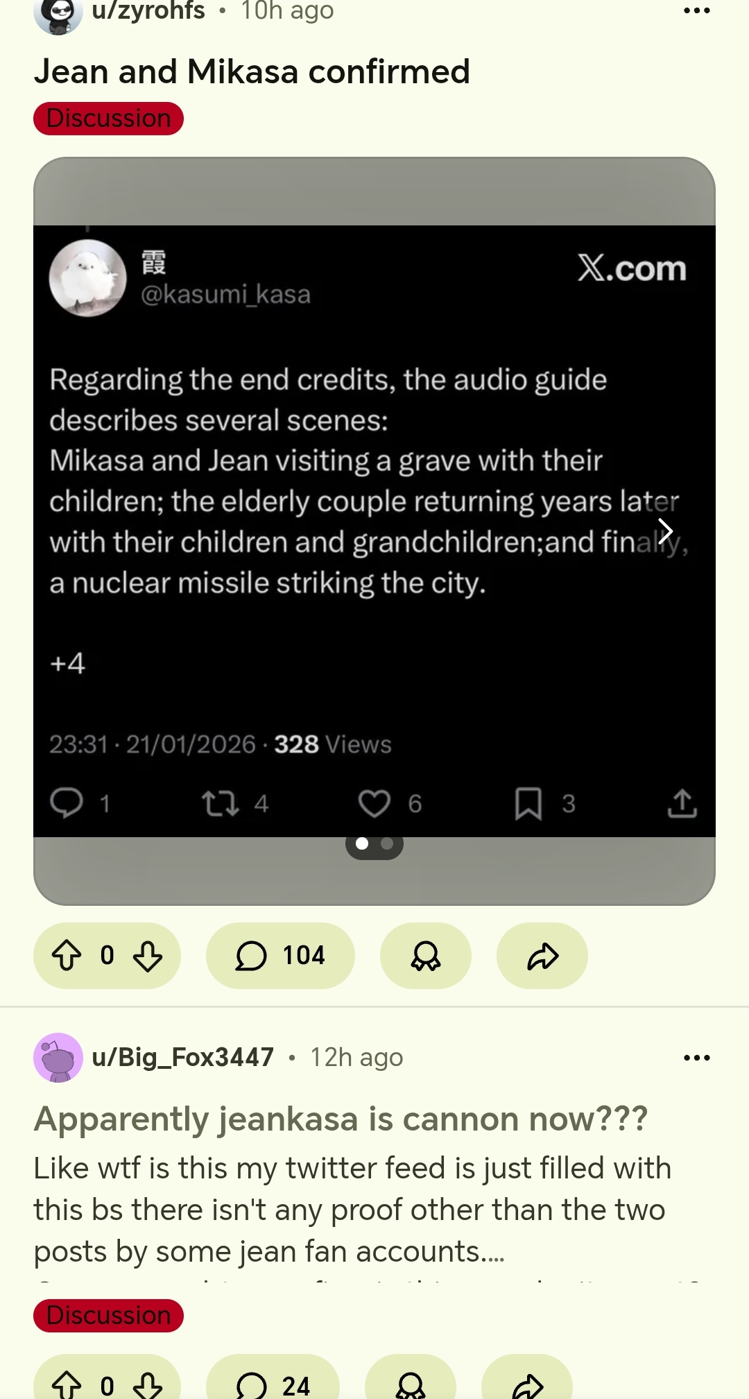 С одной стороны приятно конечно что срыникиров опустили ебалом в парашу окончательно, с другой жалко за Микасу очень что подложили под обрыгана чудовище циррозное. С третьей конечно похуй вообще, дохлый тред по дохлому тайтлу нанодесу