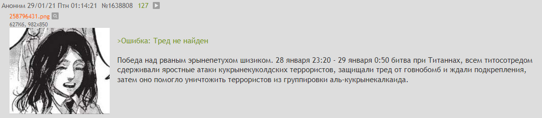 Блять архивач погиб где теперь кладезь шизопаст засрынеусов искать чтобы тредики в б по титосам поднимать? Не могу же я повторы с анимача таскать. Пиздец кризис титанотредов калыч это все из-за тебя