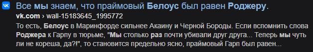 А ведь если так подумать - то когда в Маринфорде Белоус выговаривал Тичу, мол, "Ты не тот, кого ждал Роджер" - тот ему сказать мог: "Дед, ты что, совсем в маразм впал? Кто мне этот твой Роджер? Забыл что ли, кто мой батя был?"