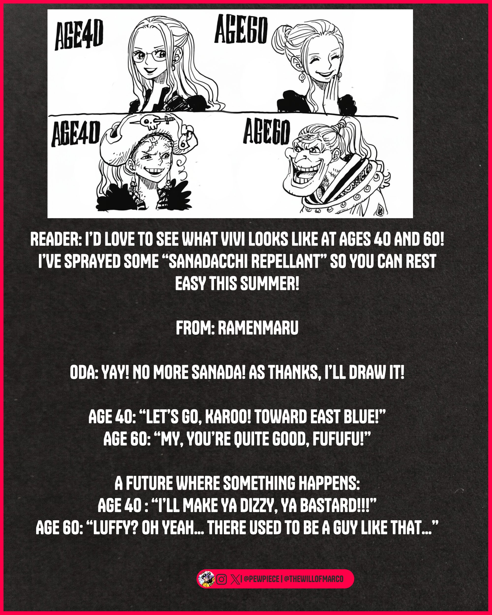 А что если (конечно, нет). Но во времена столкновения мугивар с Кумой была очередная параллель-отсылка на бой Иму с Тичем и Луффи (да-да Ода тогда еще всё знал и только самые внимательные зрители могли!) Приводят параллели, что Луффи - солнце, Тич - луна. Так и тут сценка, где Санджи - солнце, Зоро - луна.