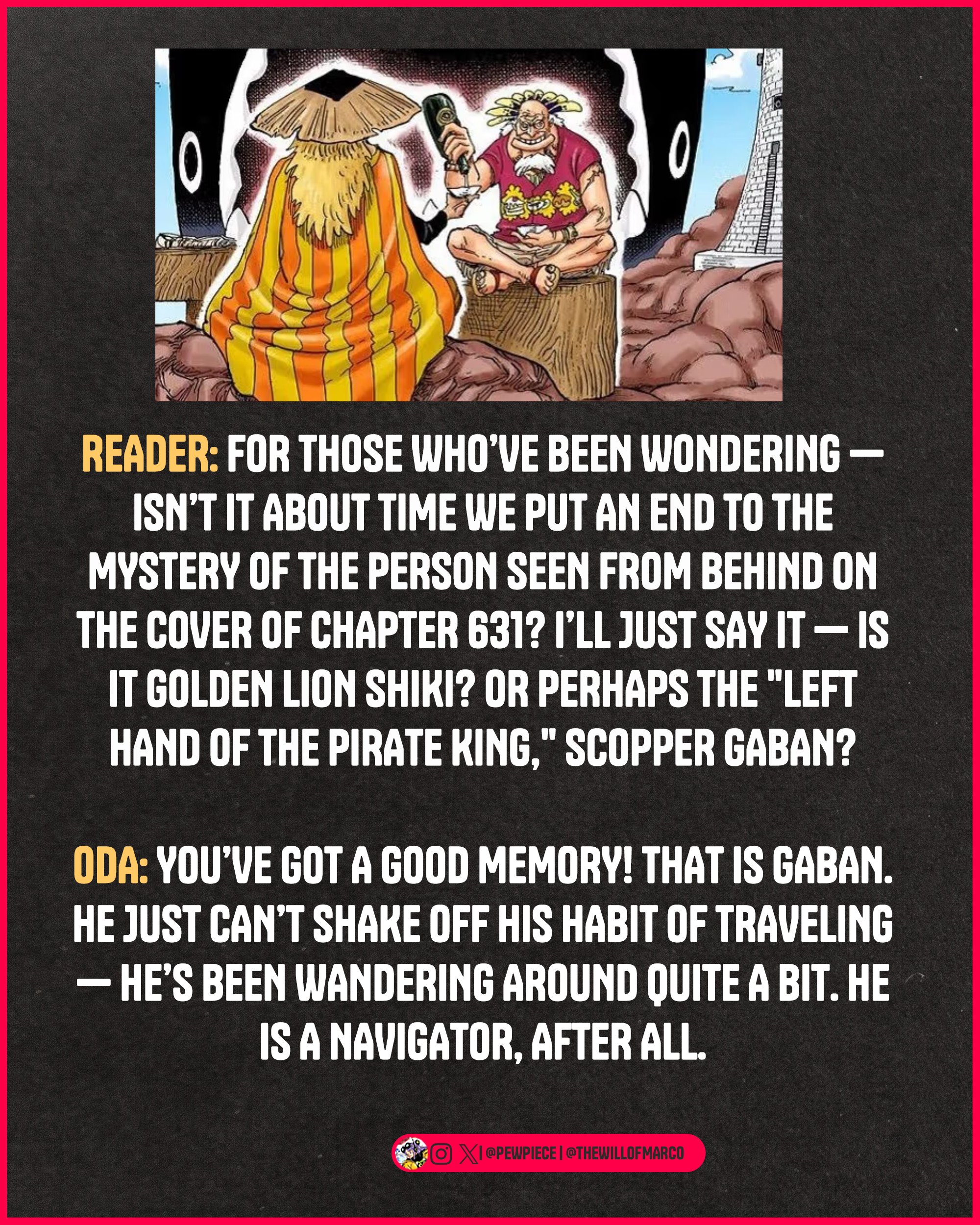 Не хватает только вот чего. Ода же гений? Гений! Тут любят приводить параллели, что а вот Гунко и Шемрок, как Багги и Шанкс.