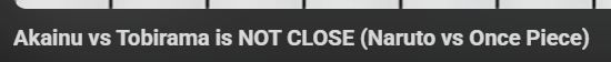 Кстати забавный момент насчет дрочи на характеристики персов. Смотрю описание возможного боя между персами Наруто и Ван Писа. И там интересный скайлинг.
