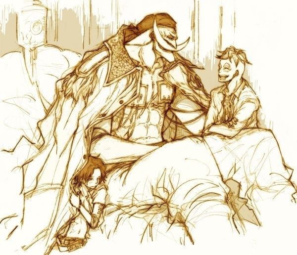 Буквально описал Шанкса в этой сцене. Казалось бы, зачем ему укладывать спать подчинённых Белоуса если он на дипломатический разговор явился, но если у него из пробитого Михоуком и Вистой очка хаки сама выделяется, то в таком случае базара зиро