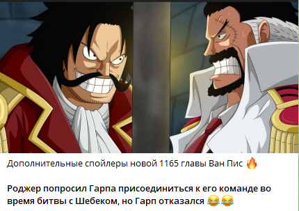 Опять ахуительные истории в спойлерах. Гарп и Роджер побеждают Шебека ваншотом, хотя до этого у него был такой уровень КВ, что он просто обнулял всё атаки по себе. Ебало представили, перса такого уровня ваншотнули. Всё, лишь бы битву не рисовать.