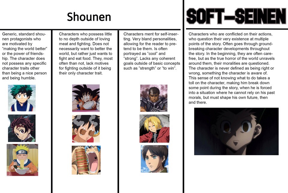 Короче теперь в манге уже 100% можно отследить определённый положняк. Всех персонажей можно разделить на два типа