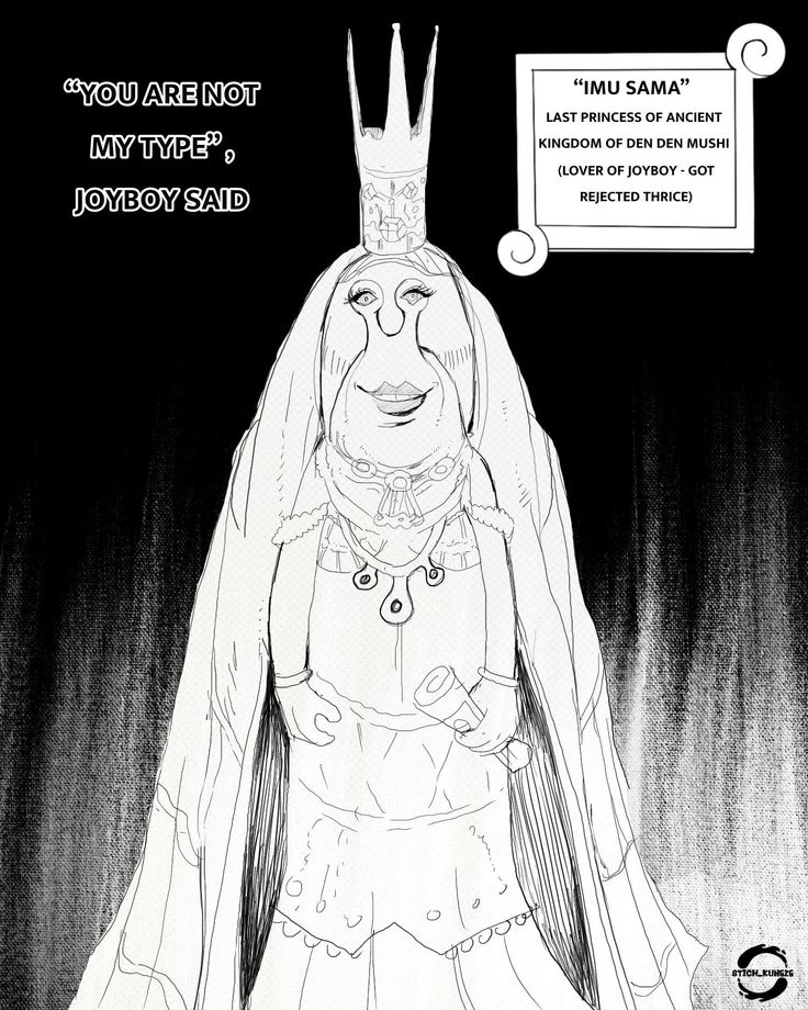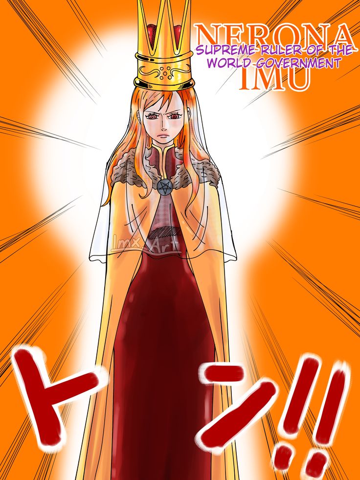 >Иму достает чемоданчик, нажимает кнопочку и взрывает самое уебищное королевство. Остальные 9 все дружненько поставляют налоги, еду и шлюх. Если бы Иму хотел править силой, то он бы давно это сделал, если Иму раскроет себя, то против него ополчатся не только королевства, но и йонко с дозором, начнется мировая бойня