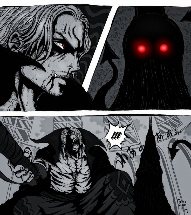 Главный твист.... у Им-саму на самом деле нет никакой внешности. Эта тёмная клякса, это настоящий облик. Вот это будет твист. Первый в истории персонаж куска у которого тёмный силуэт настоящий. Вот это была бы многослойная.