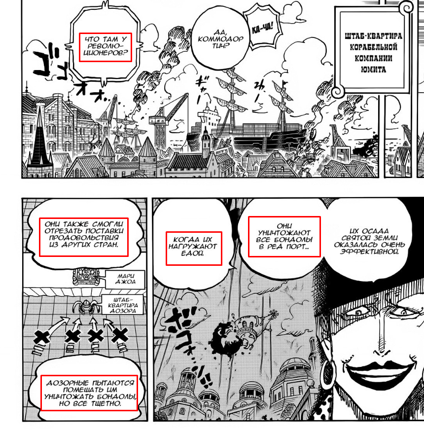 Опять ты не читаешь мангу, а теперь покажи пожалуйста где тут причиной указана непогода в мариджоа, а не действия революционеров.