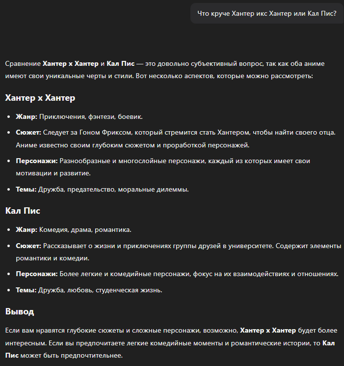 >Не может самостоятельно мыслить >Не может найти аргументы >Обращается в нейросетям, думая, что они высший разум >Не дает нейросети всю информацию >Заставляет согласиться с ним >Несет в тред Уровень мышления после прочтения манги Hunter x Hunter.