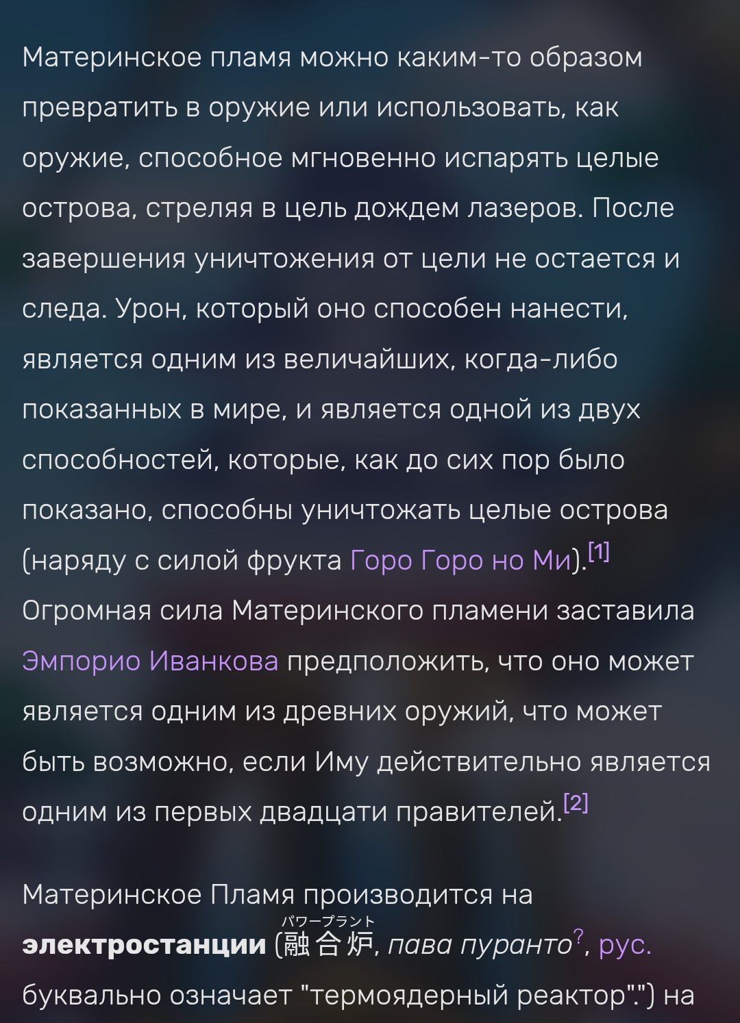 >Ты можешь коммуницировать с помощью него и слышать голос всех вещей, по типу как Луффи обращался к Момо во время битвы. Это все никак не позволяет понять что это за хуйня вселилась в сатурна, понять её статус, политический ранг и т.д.
