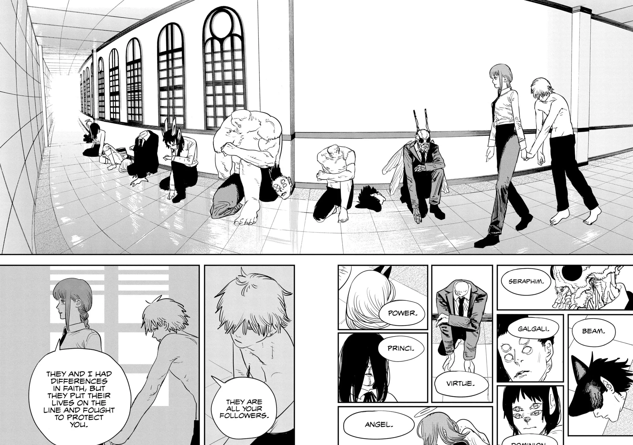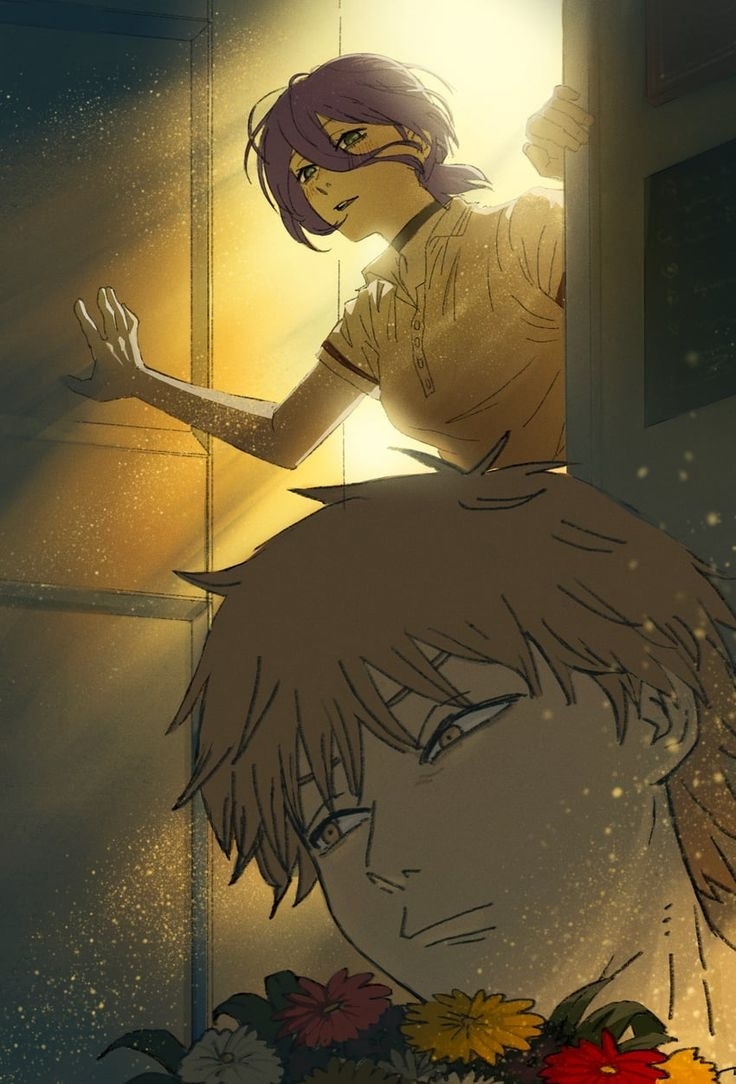 Кстати, я шас вспомнил самое начало первой арки, где Аки чуть пизды не дал Дэнжи, за его слова, что тот бы подружился с демоном, а сам под конец закорешился с Хуебесом Ангелом. Иронично.