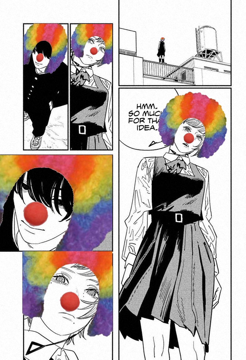 Вторая часть это Большой Лебовски от Фудзимото. Наши герои ничего не добьются. Ничего не изменится. Все будет бессмысленно. Я не удивлюсь если жопа Фудзихуя высрет Аки, Павер и Макиму и вернёт все обратно. И через два года будет третья часть.