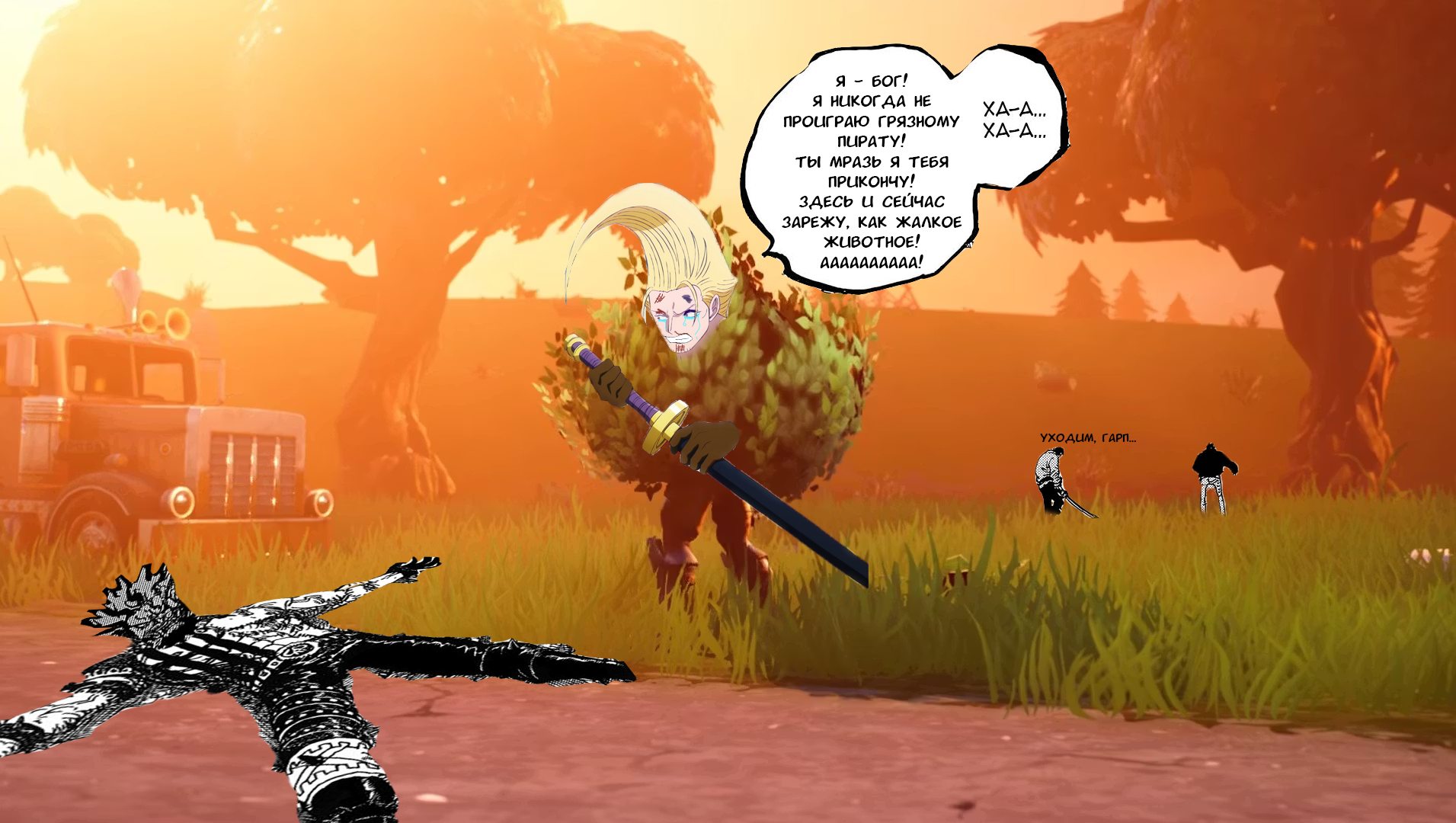Даже сильнейшая комбо-атака Гарпа и Роджера не может убить Шебека. А Гарлинг с удара - на нахуй получай! Перо под ребо.
