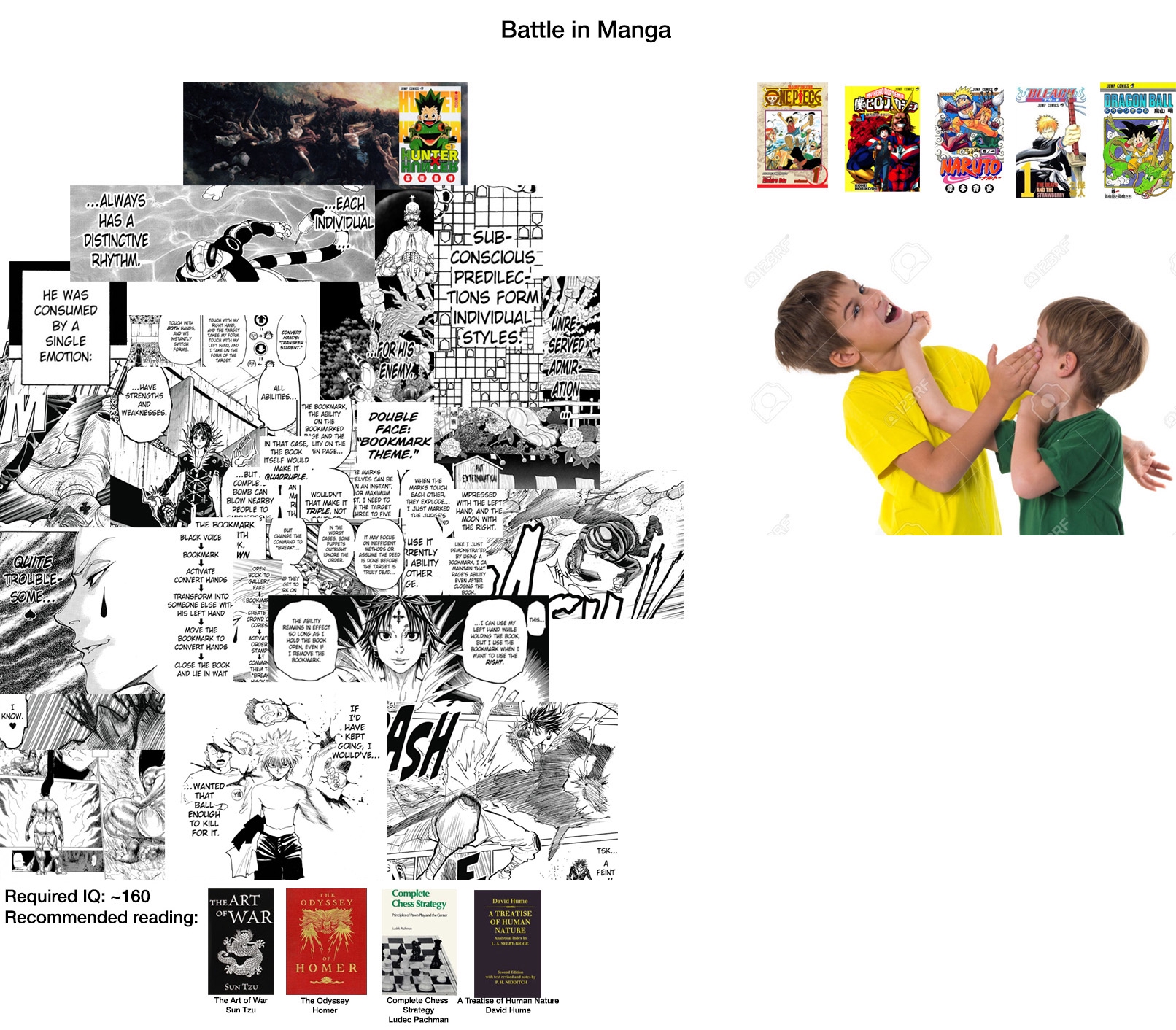 Если в детстве ты катался по разным странам, лазил по заброшкам, пиздился с пацанами — тебе будет нравится Ван Пис Если в детстве ты чаще играл с девочками, трогал их за всякие места — тебе будет нравится Фейри Тейл Если в детстве ты сидел дома — тебе будет нравится Блич Если в детстве с тобой никто не хотел играть — тебе будет нравится Наруто Если в детстве тебя ебал отчим, а старшаки макали головой в унитаз — тебе будет нравится Хантер х Хантер