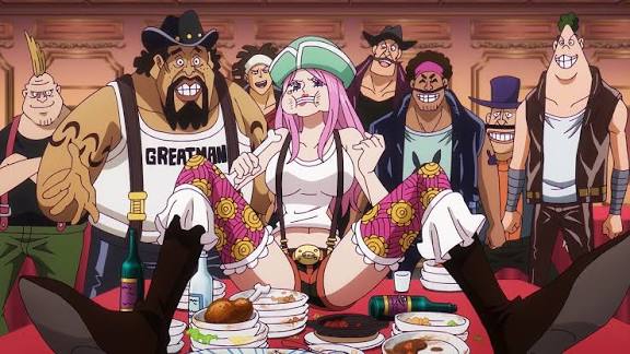 Помимо этого всплывают в сюжете старые персонажи и их апают до актуального уровня, что какой-нибудь Арлонг с его "я вам тоже помогу" теперь косит как траву армию святых рыцарей-статистов бесконечно регенящихся.